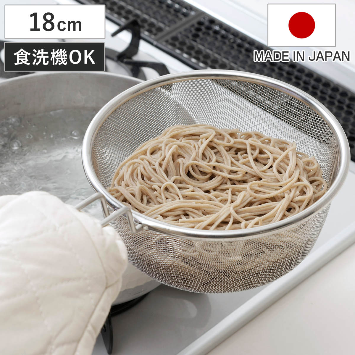 ザル 18cm ママクック ゆであげザル 片手ザル 日本製 ( Mamacok 水切りザル 湯切りザル 持ち手付き 取っ手付き ざる 食洗機対応 オールステンレス キッチンザル キッチンツール 調理器具 キッチン小物 麺類 茹で野菜 )