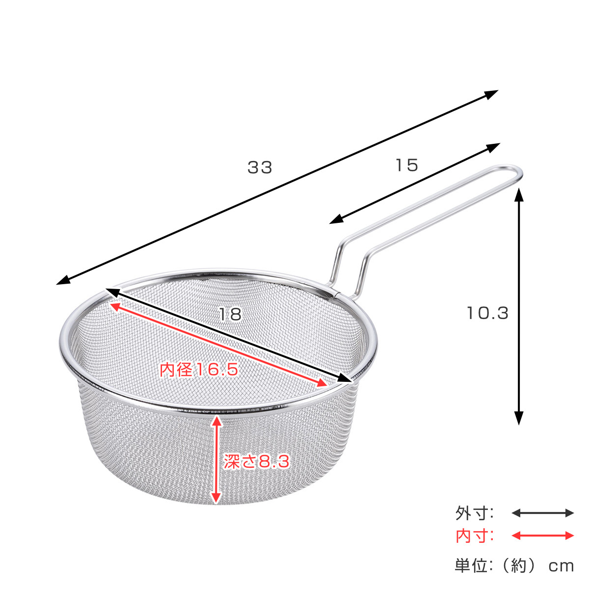 ●細かい網目で、麺類や野菜の茹で上げや水切りに便利です。