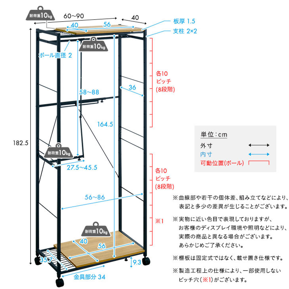 | サイズ | 幅60~90×奥行40×高さ182.5cm |