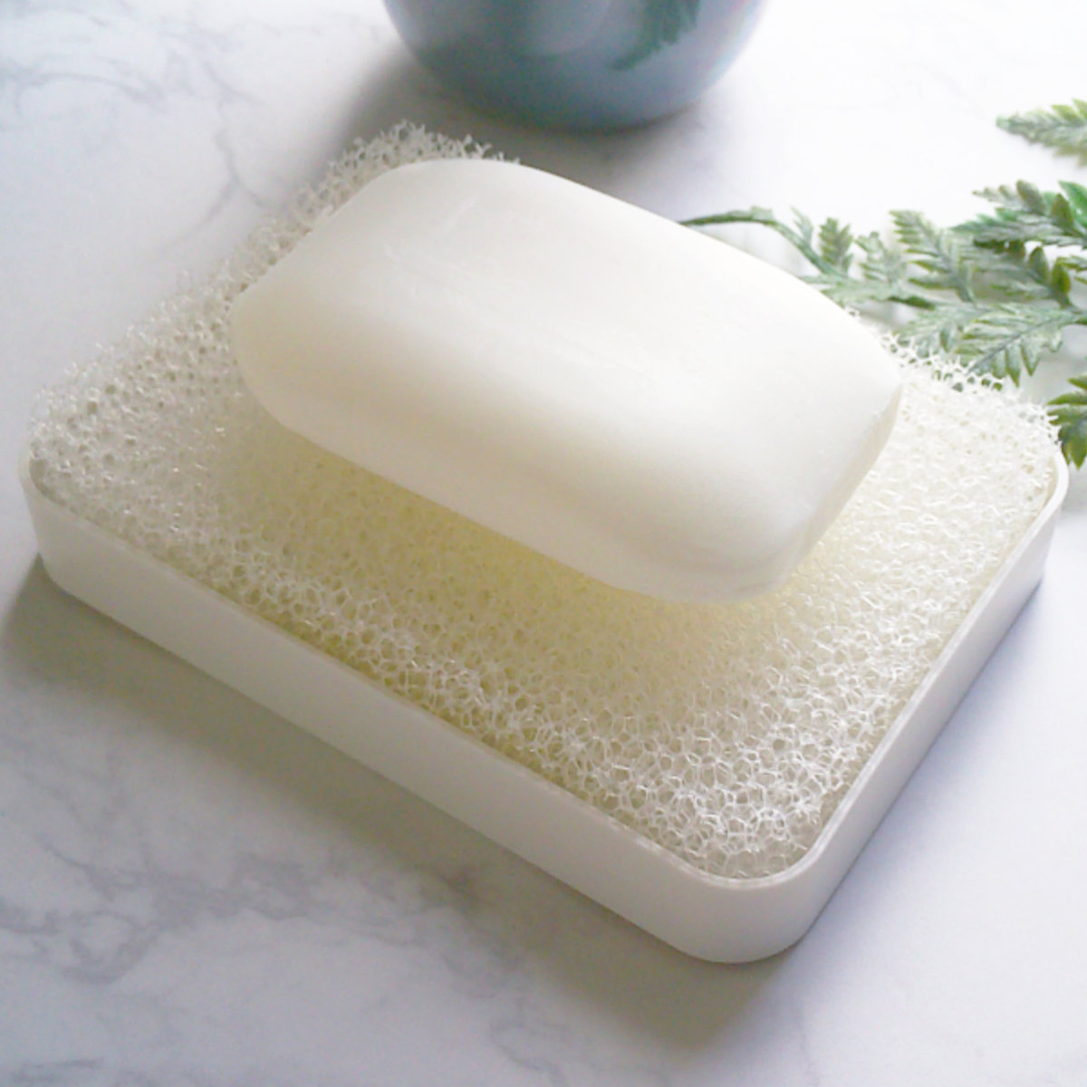 石けんが溶けにくく、長持ちしやすい石けんトレーです。粗めのスポンジを使用しているため水切れがよく、石けんを清潔に保管できます。また、スポンジ部分を取り外して洗面台やシンク周りのお掃除にもご使用いただけます。