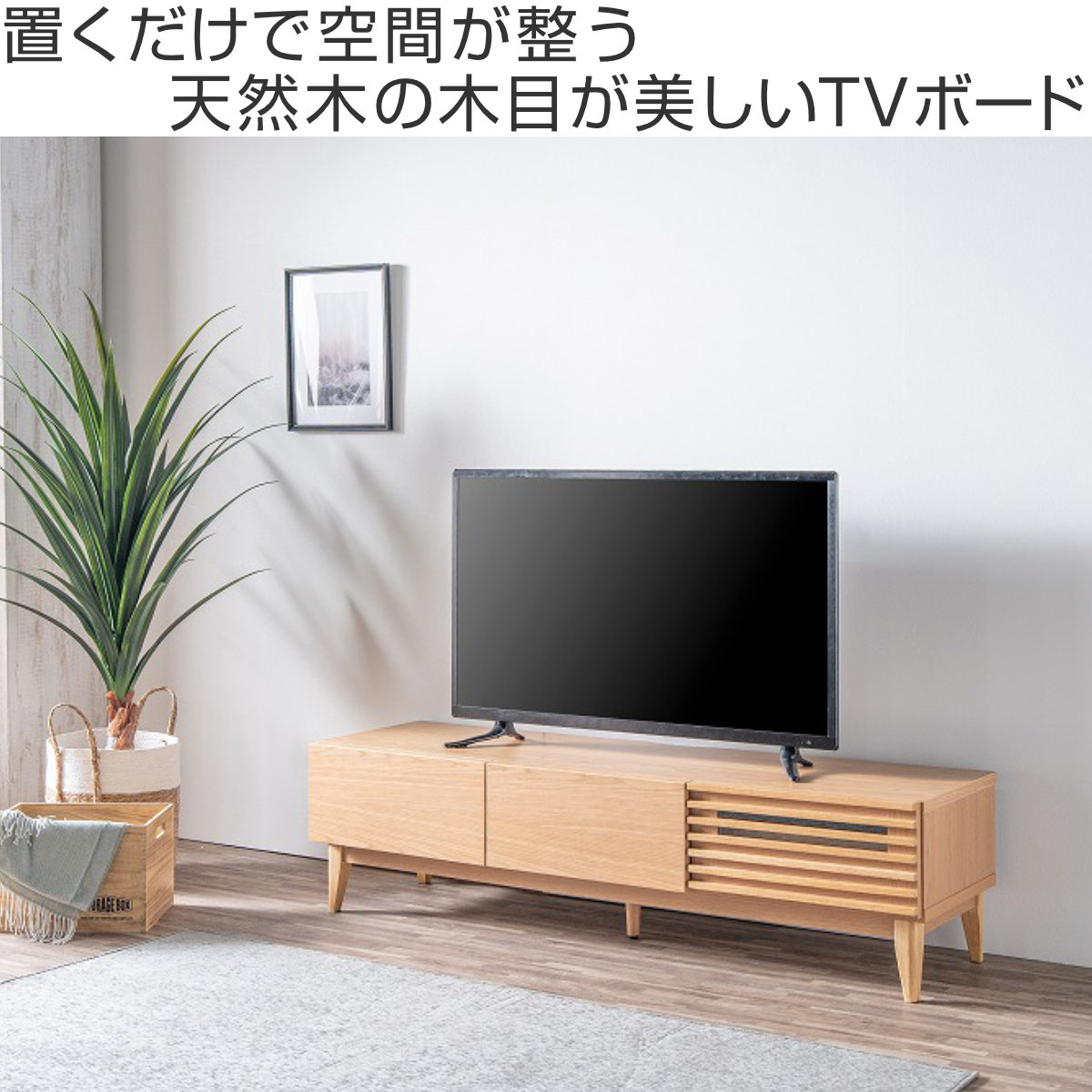 テレビ台 ローボード 幅149.2cm ルーバー おしゃれ お掃除ロボット対応 引き出し ( TV台 テレビボード 棚 リモコン操作可能 天然木突板 リビングボード 収納 家具 フルスライドレール ナチュラル )