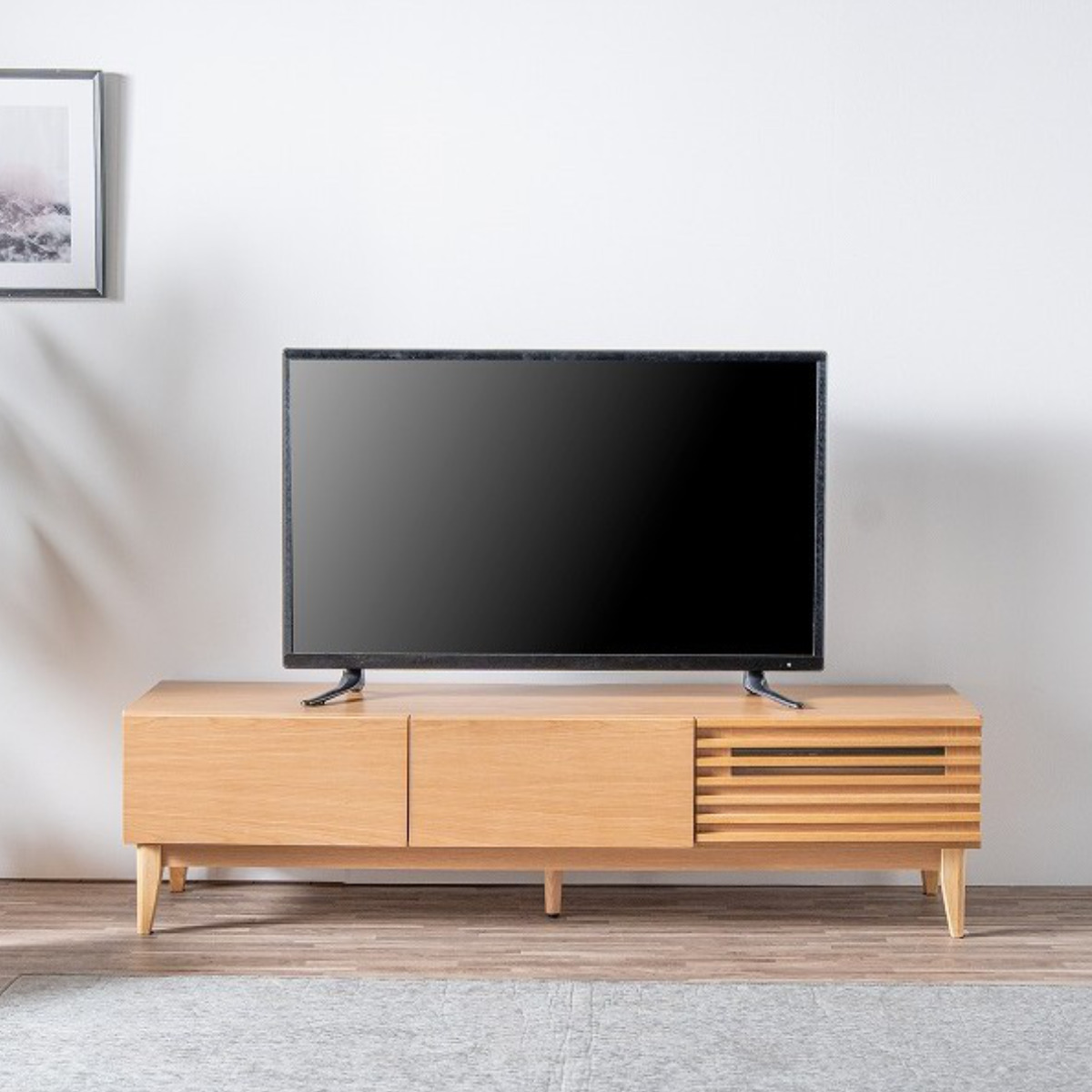 テレビ台 ローボード 幅149.2cm ルーバー おしゃれ お掃除ロボット対応 引き出し ( TV台 テレビボード 棚 リモコン操作可能 天然木突板 リビングボード 収納 家具 フルスライドレール ナチュラル )のレビュー