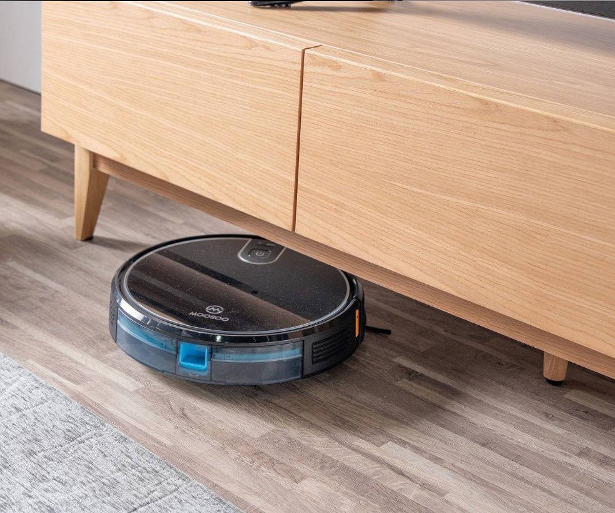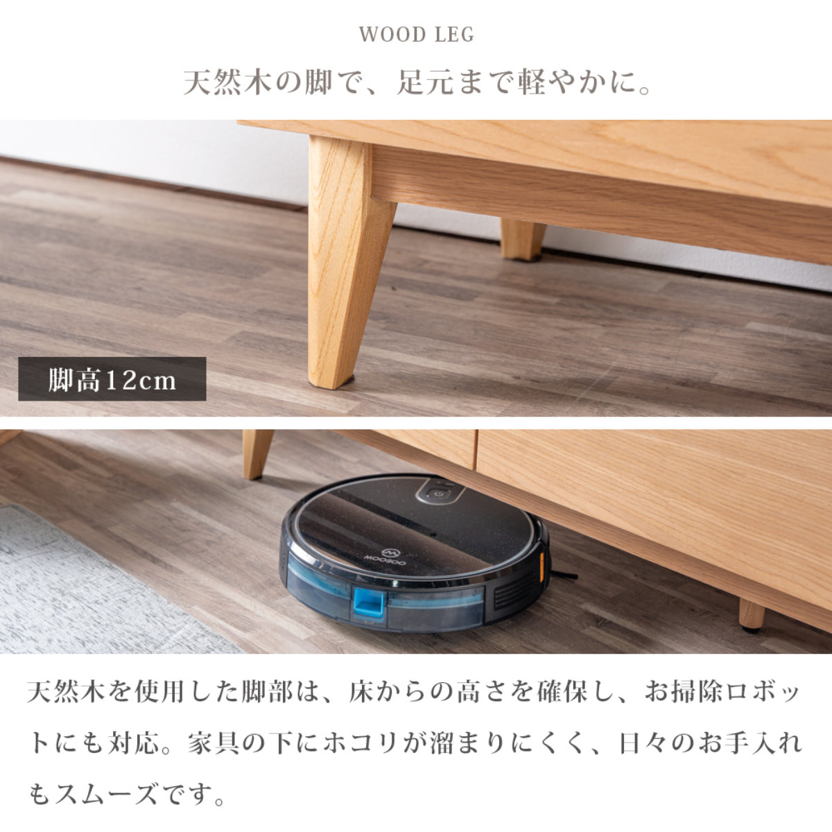 天然木を使用した脚部の高さは12cm。床下にしっかりスペースを確保するので、ロボット掃除機もスムーズに通過でき、掃除もしやすくなります。