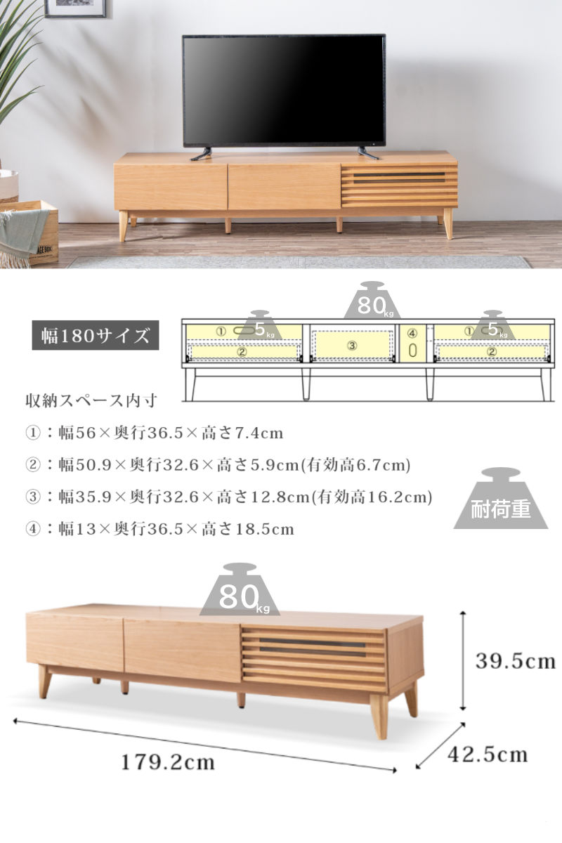 ゆったりサイズで部屋を格上げするテレビ台 幅179.2cm