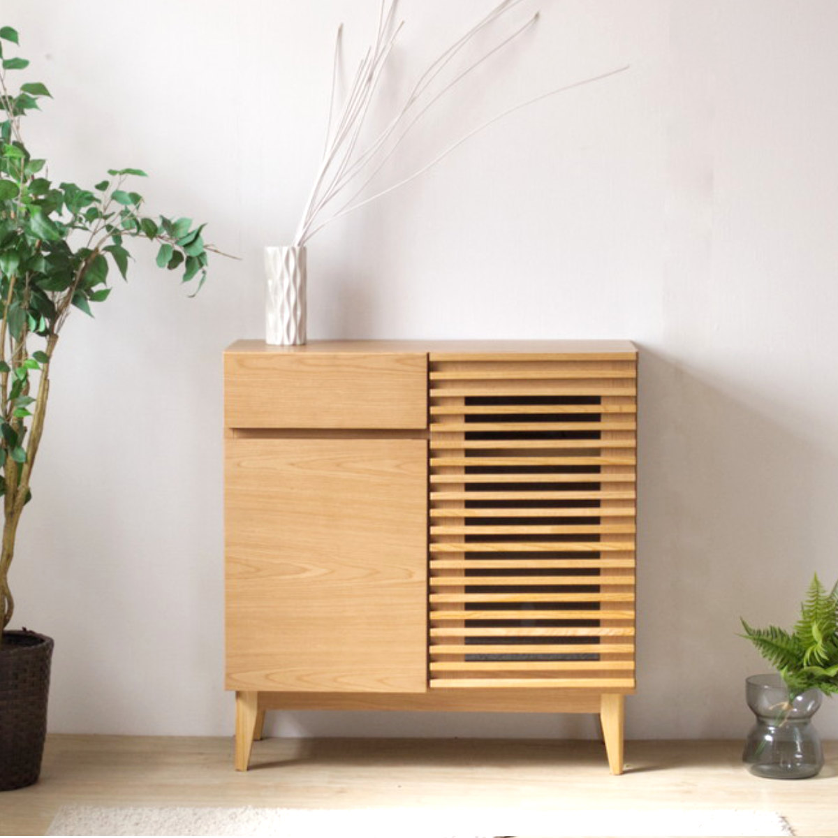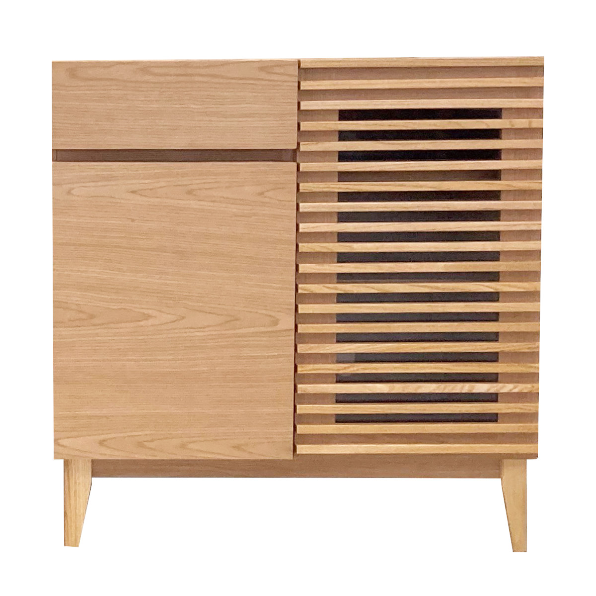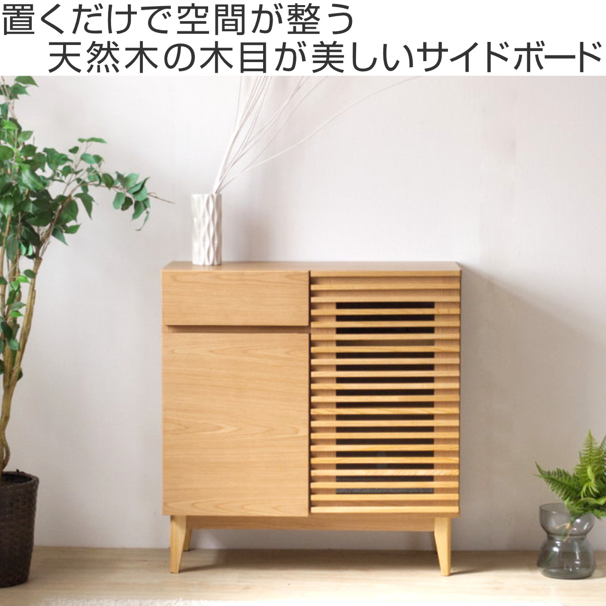 サイドボード 幅79.7cm ルーバー おしゃれ お掃除ロボット対応 引き出し リビング収納 ( ラック 棚 可動棚 天然木突板 キャビネット リビングボード 収納 家具 フルスライドレール ナチュラル )