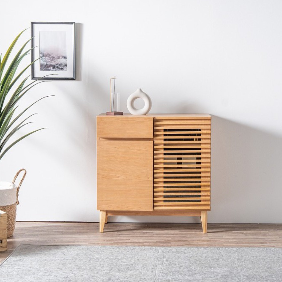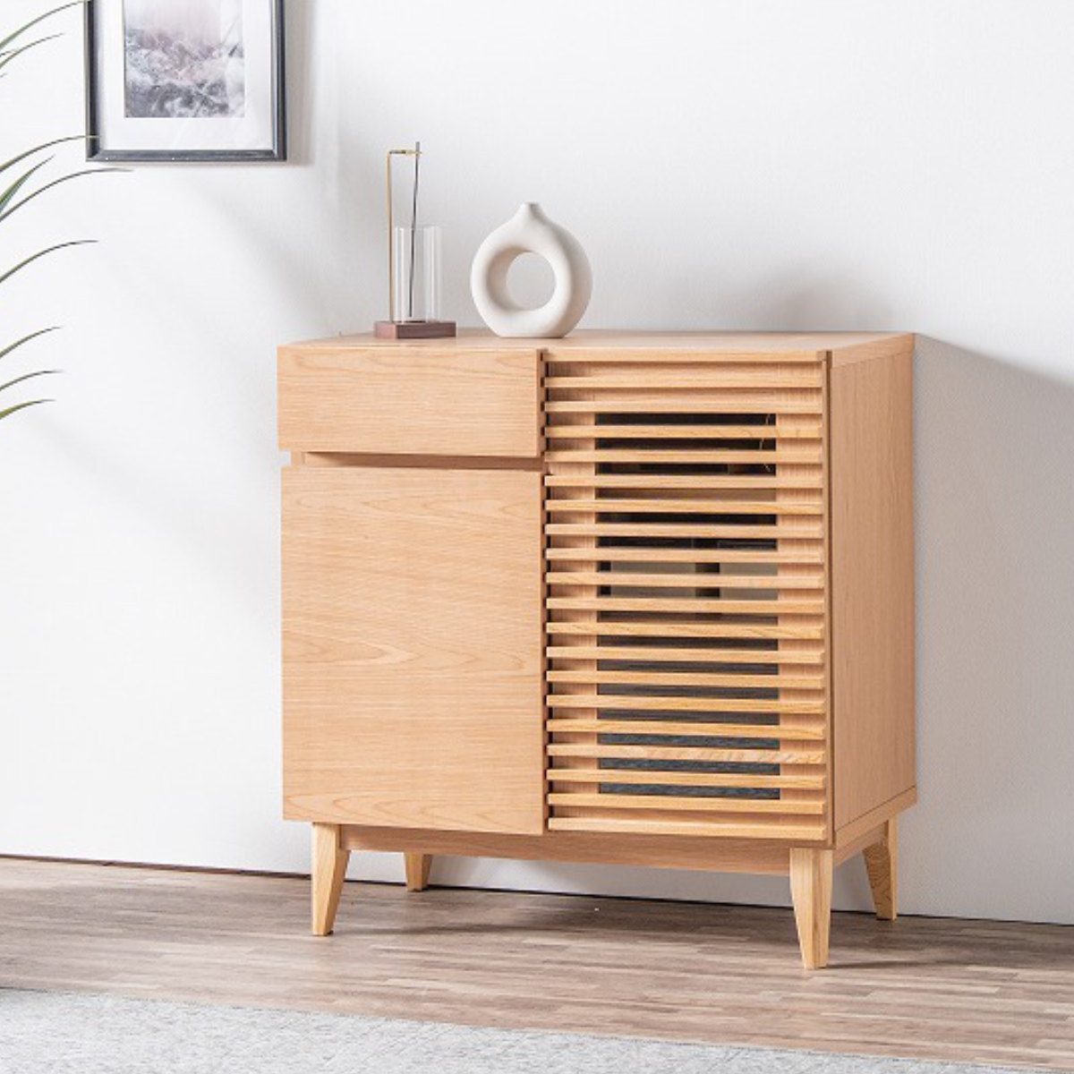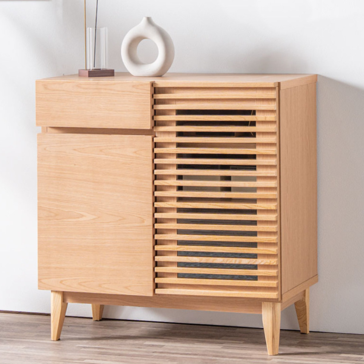 サイドボード 幅79.7cm ルーバー おしゃれ お掃除ロボット対応 引き出し リビング収納 ( ラック 棚 可動棚 天然木突板 キャビネット リビングボード 収納 家具 フルスライドレール ナチュラル )