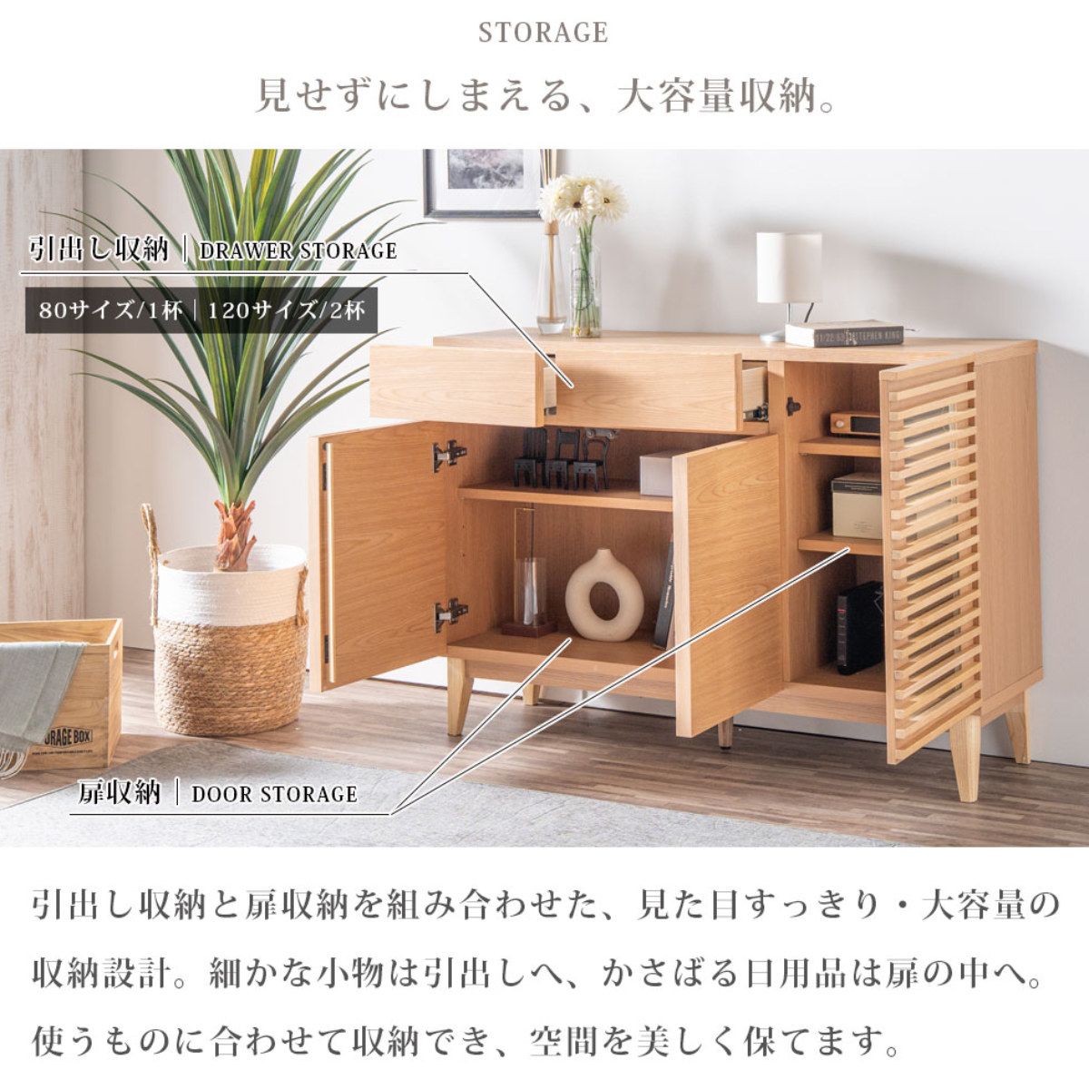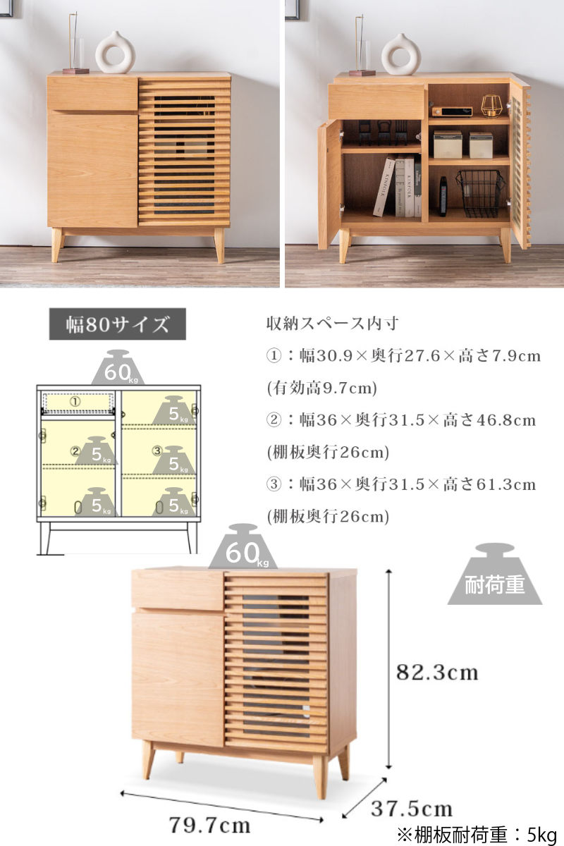 コンパクトで大容量、使いやすさ抜群のサイドボード 幅79.7cm