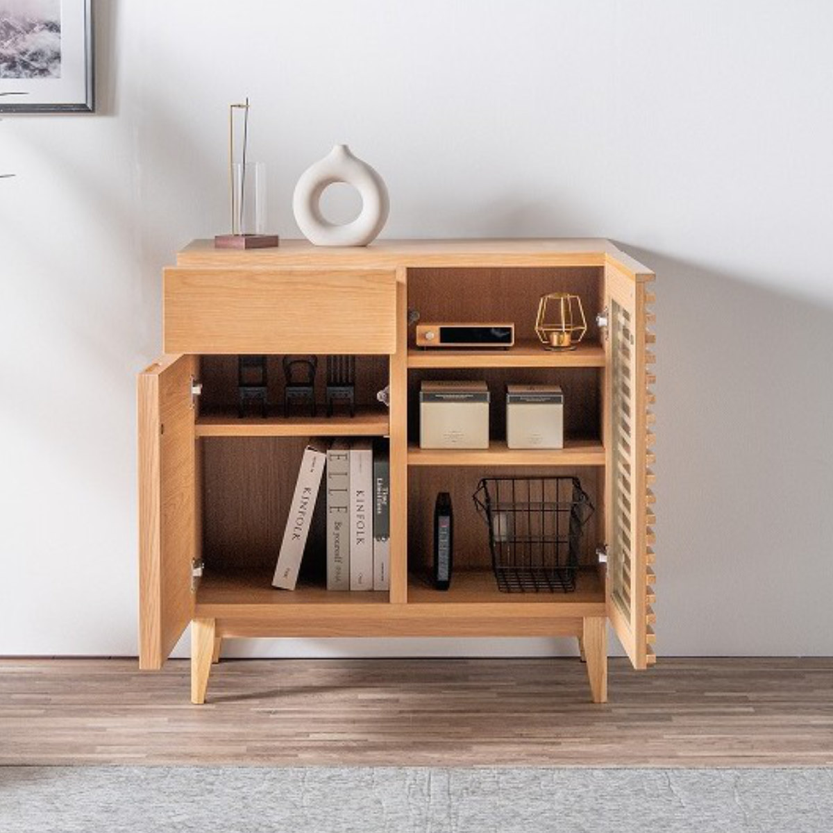 限られたスペースでも使いやすく、収納場所に困りがちな細かなアイテムもすっきり整理できます。様々なテイストに調和し、お部屋全体を心地よい雰囲気に整えます。「見せる家具」としても楽しめます。