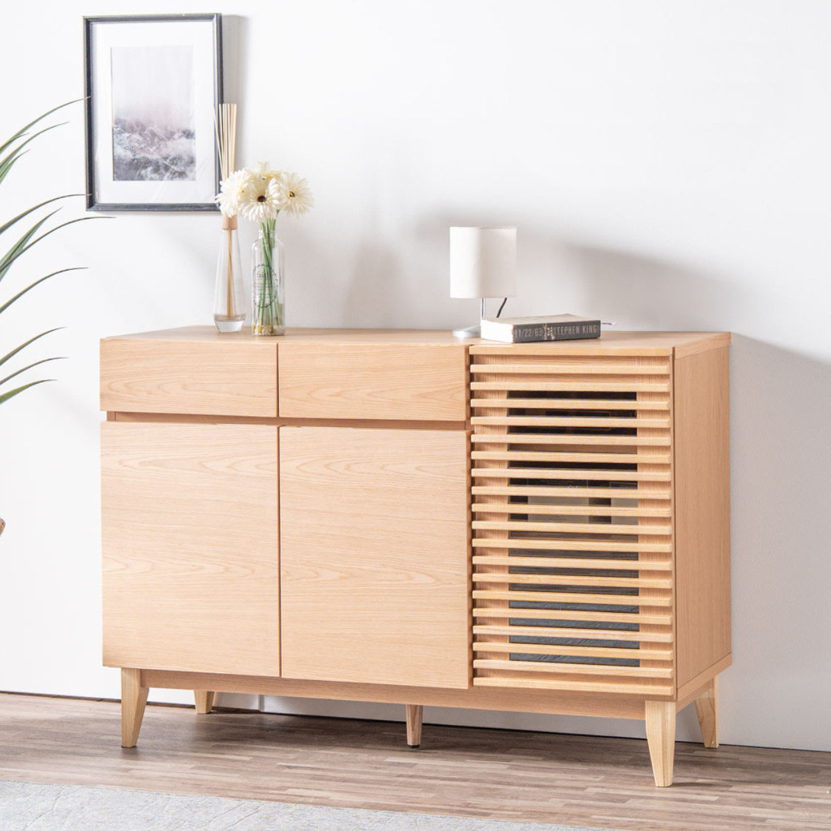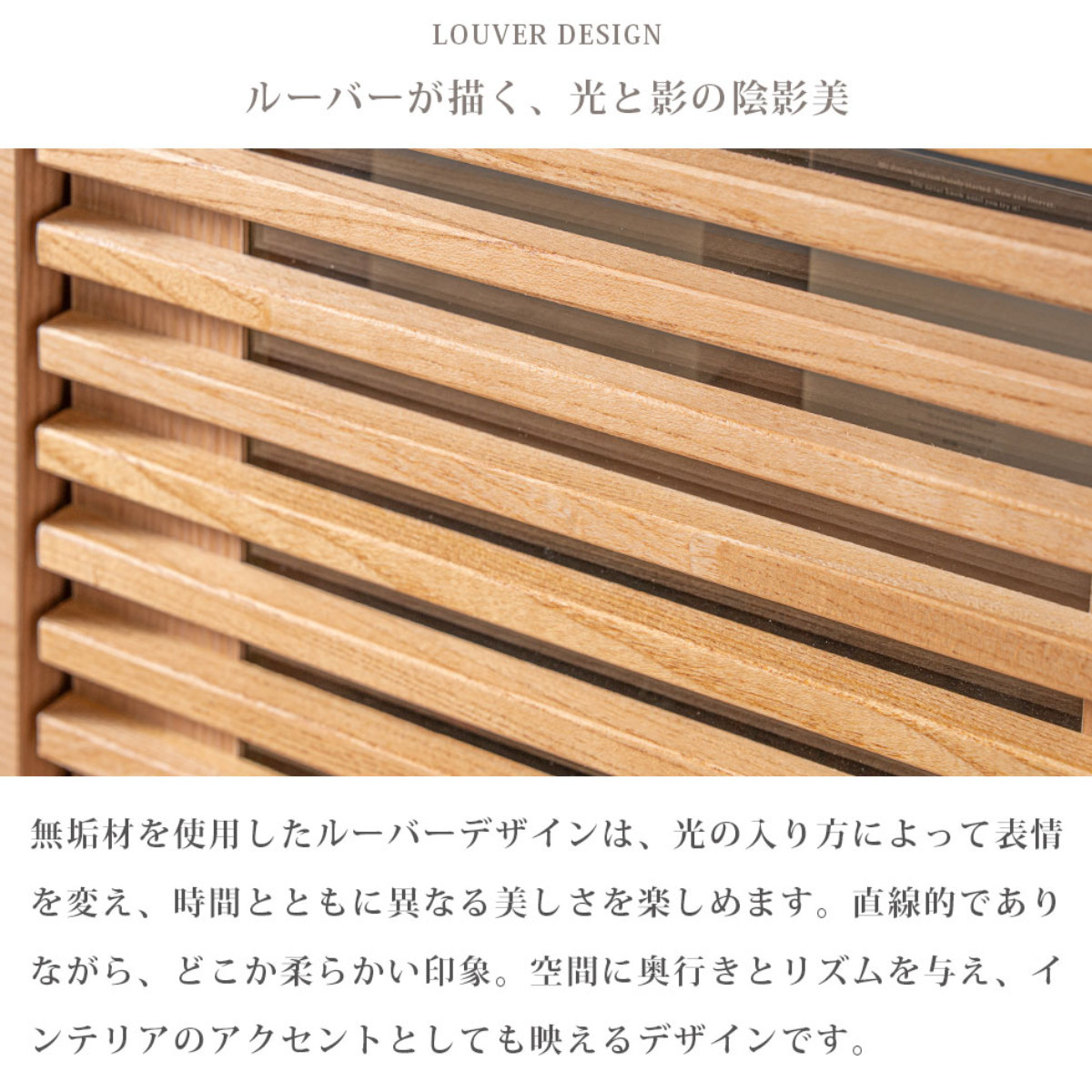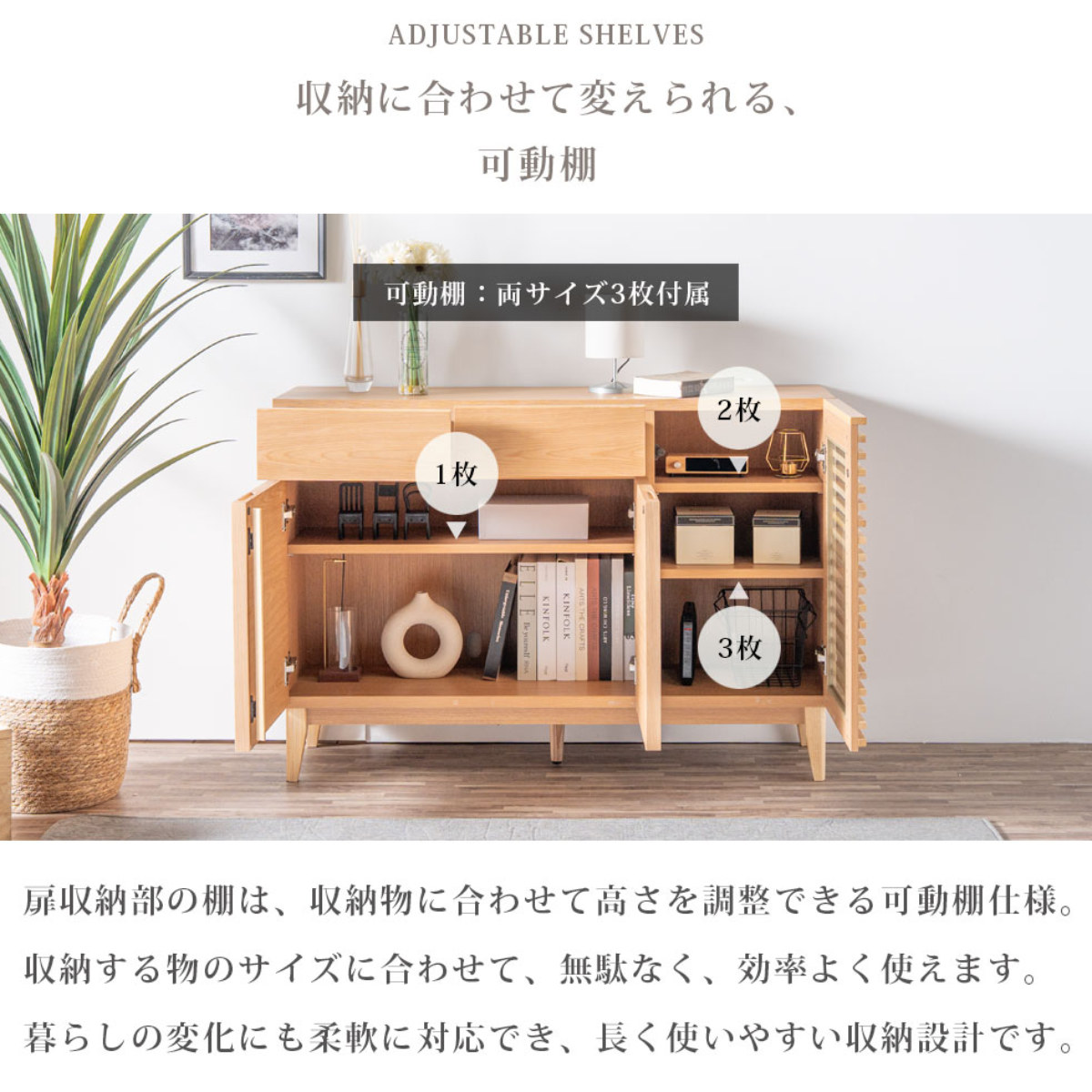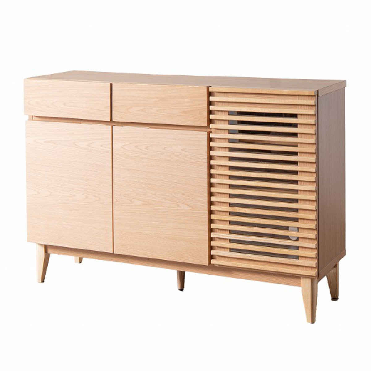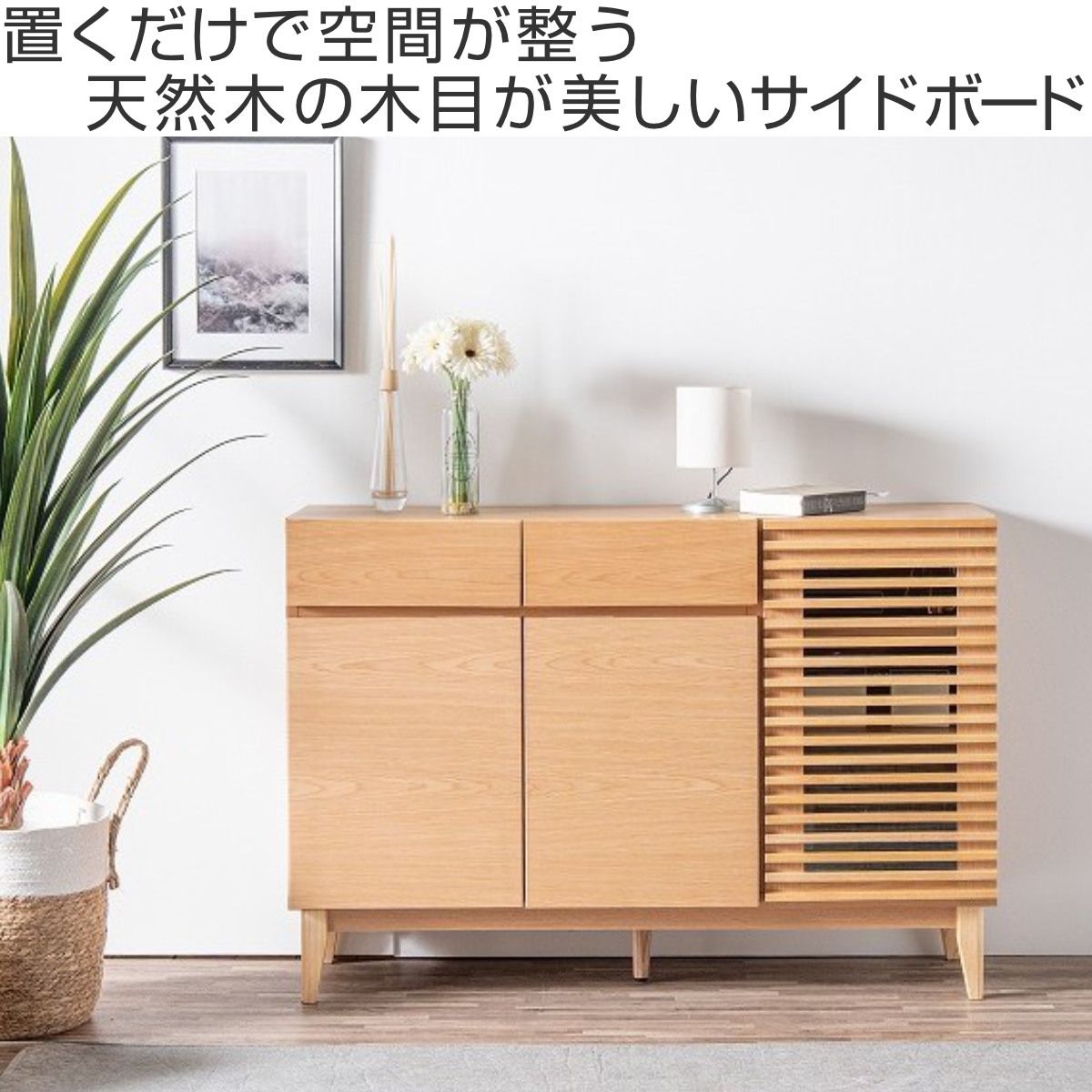 サイドボード 幅119.7cm ルーバー おしゃれ お掃除ロボット対応 引き出し リビング収納 ( ラック 棚 可動棚 天然木突板 キャビネット リビングボード 収納 家具 フルスライドレール ナチュラル )