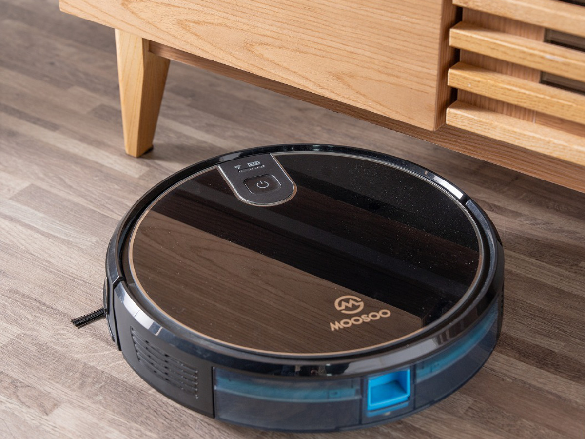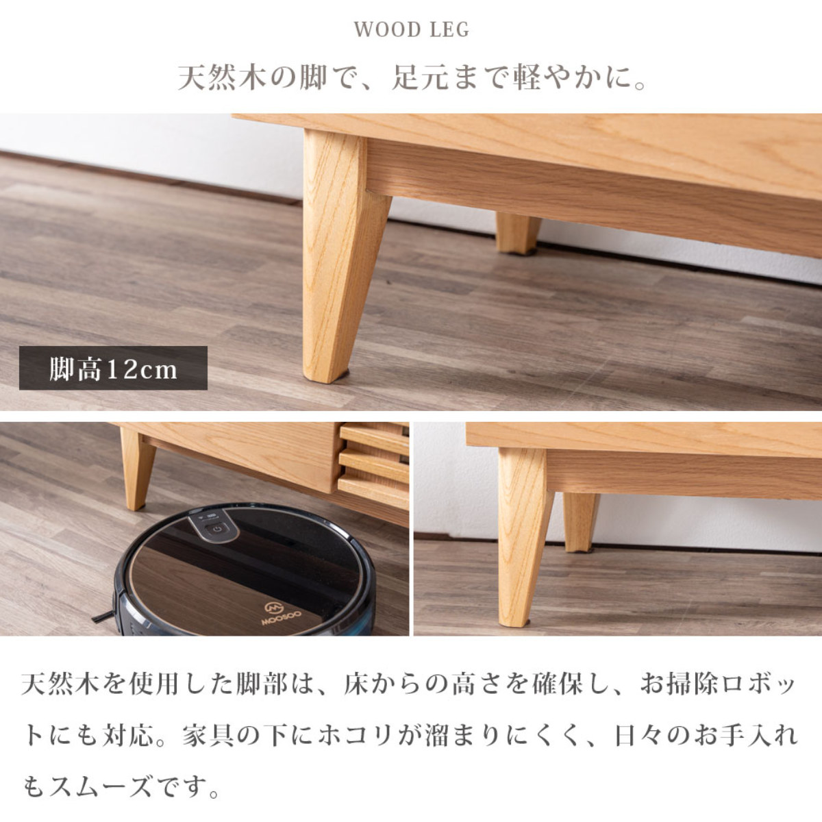 天然木を使用した脚部の高さは12cm。床下にしっかりスペースを確保するので、ロボット掃除機もスムーズに通過でき、掃除もしやすくなります。