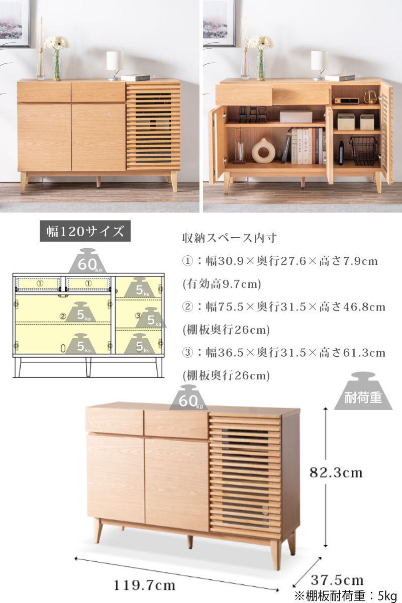 コンパクトで大容量、使いやすさ抜群のサイドボード 幅119.7cm