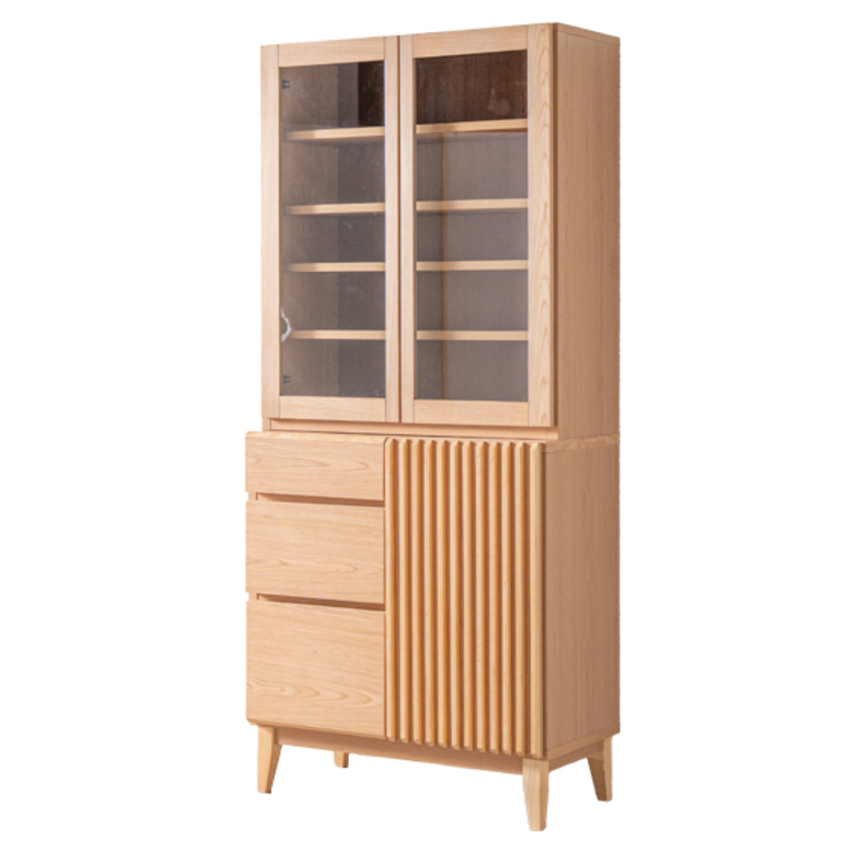 光を通す木製ルーバーで上品な印象です。ガラス貼りなので扉を閉じたままリモコン操作ができます。