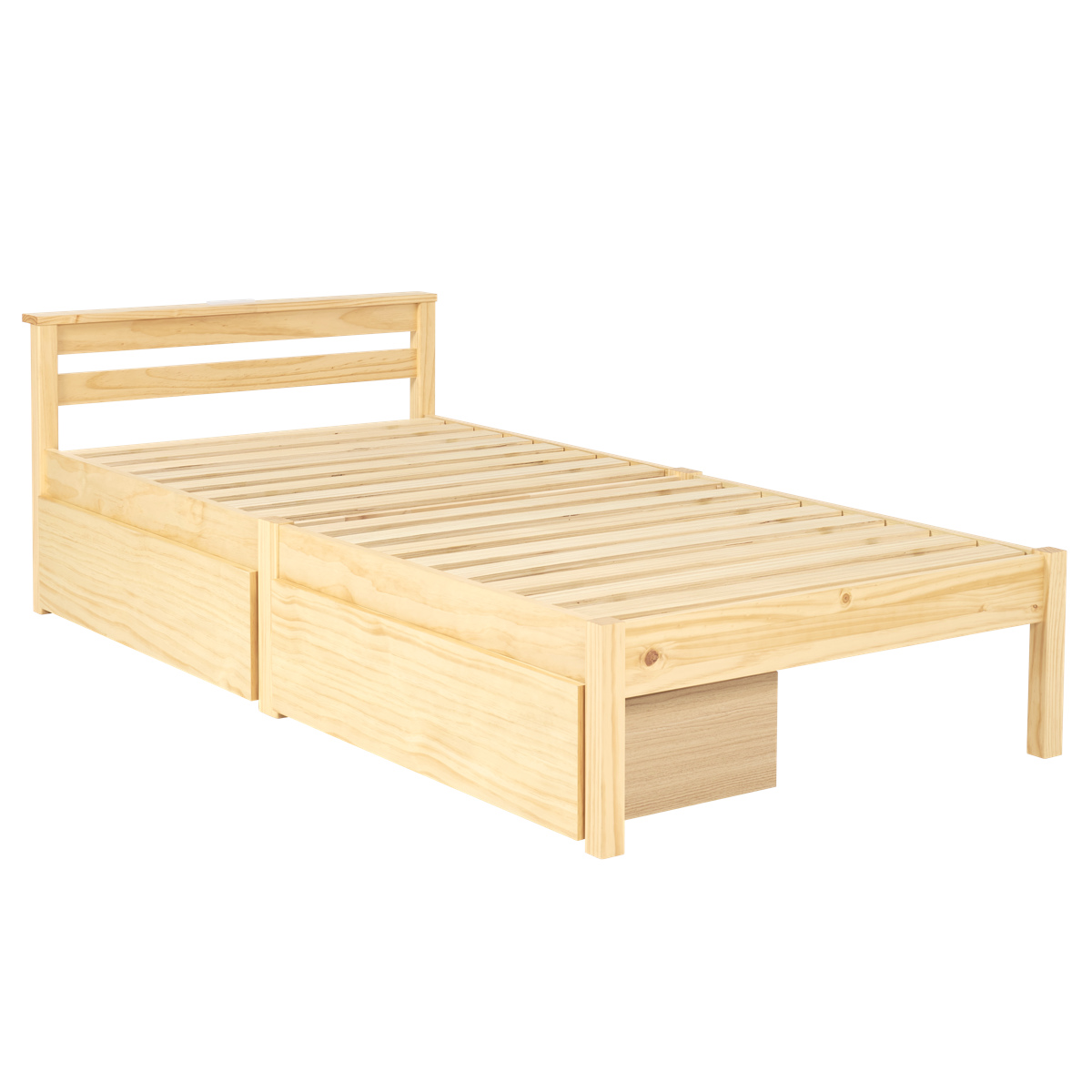 ネジも工具も不要、簡単に組み立てることができるベッドフレームです。パーツを差し込むだけなので、組み立て家具が苦手な方でもたった3分で組み立てることができます。天然木の温もりが感じられる柔らかなパイン材を使用し、美しい木目と経年による色の変化を楽しめます。