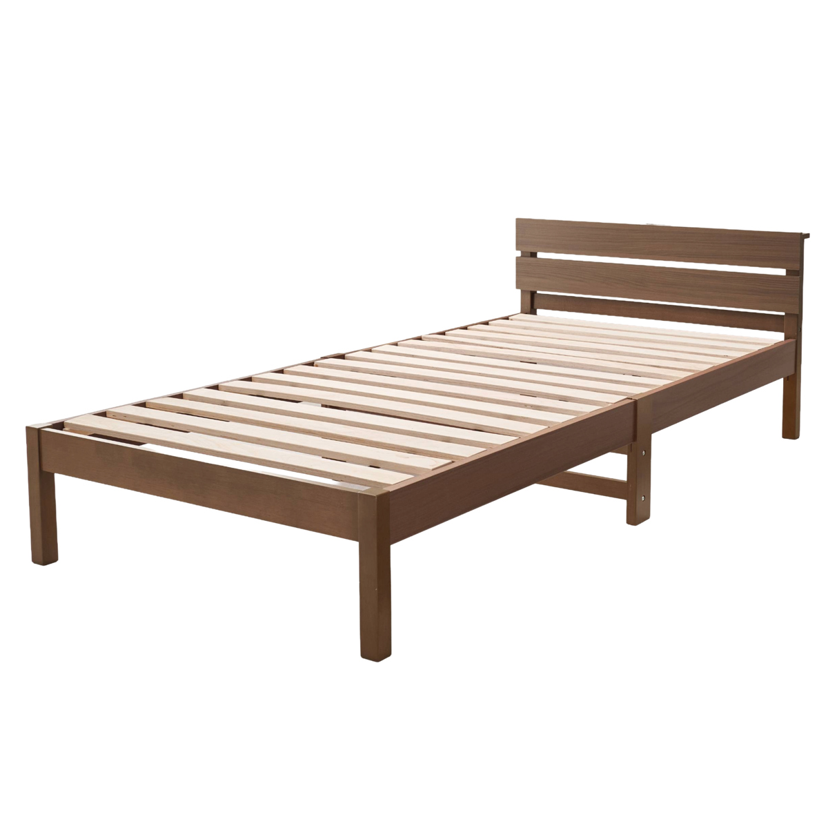 3分組立ベッド シングル 宮棚 2口コンセント付 パネルヘッド ( ベッド 3分組み立て 組み立て簡単 棚付き 工具不要 すのこベッド 耐荷重150kg ブラウン ナチュラル ) 【ブラウン】