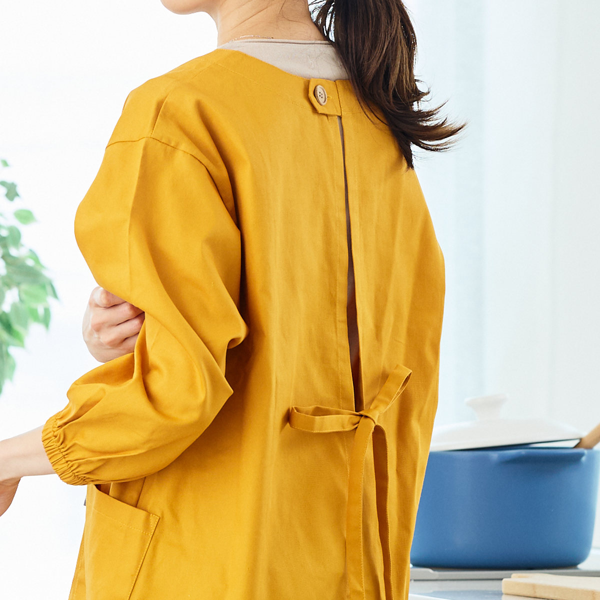 割烹着 Leende ルピナス カッポウギ ( エプロン かっぽうぎ 台所エプロン ポケット付き 袖付き 綿100% ワンピースエプロン 長袖 袖 ゴム 無地 シンプル 大人用 腰ひも レディース おしゃれ ) 【イエロー】