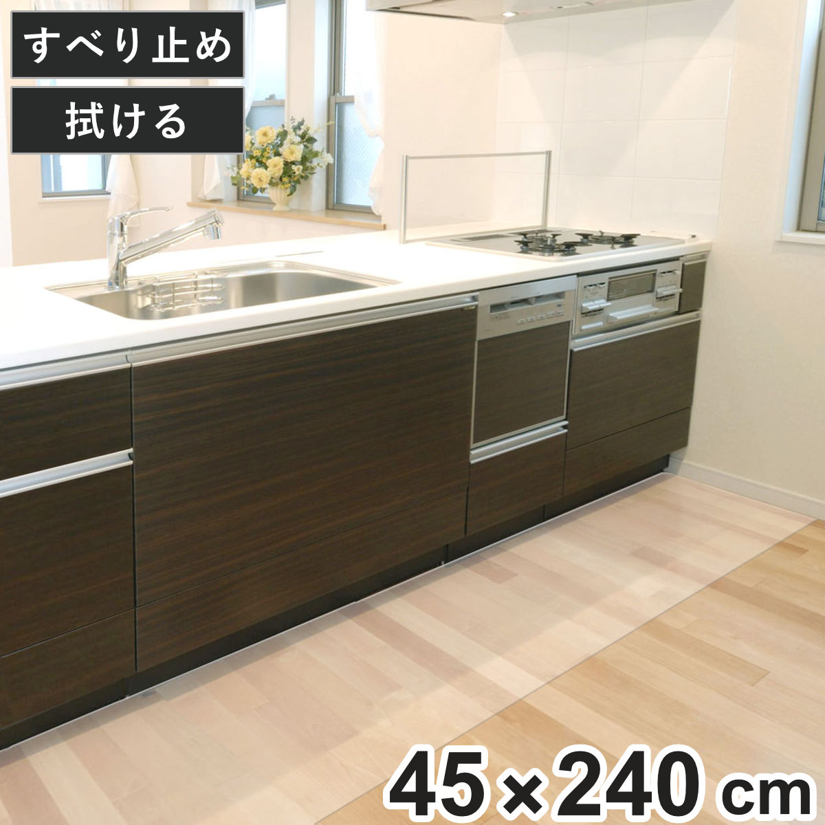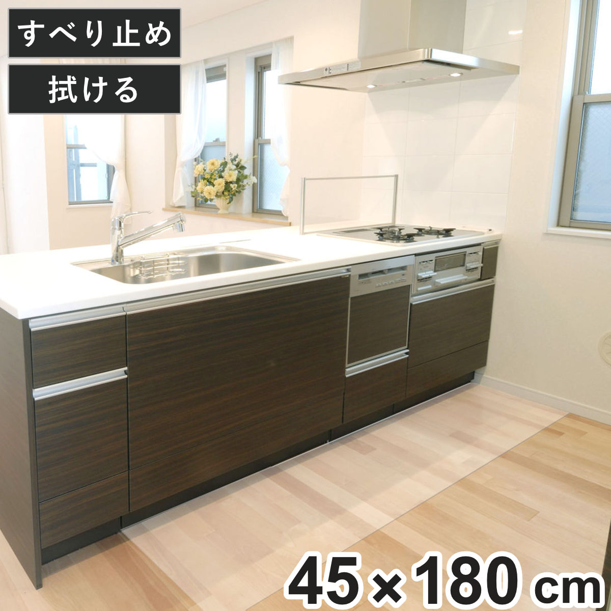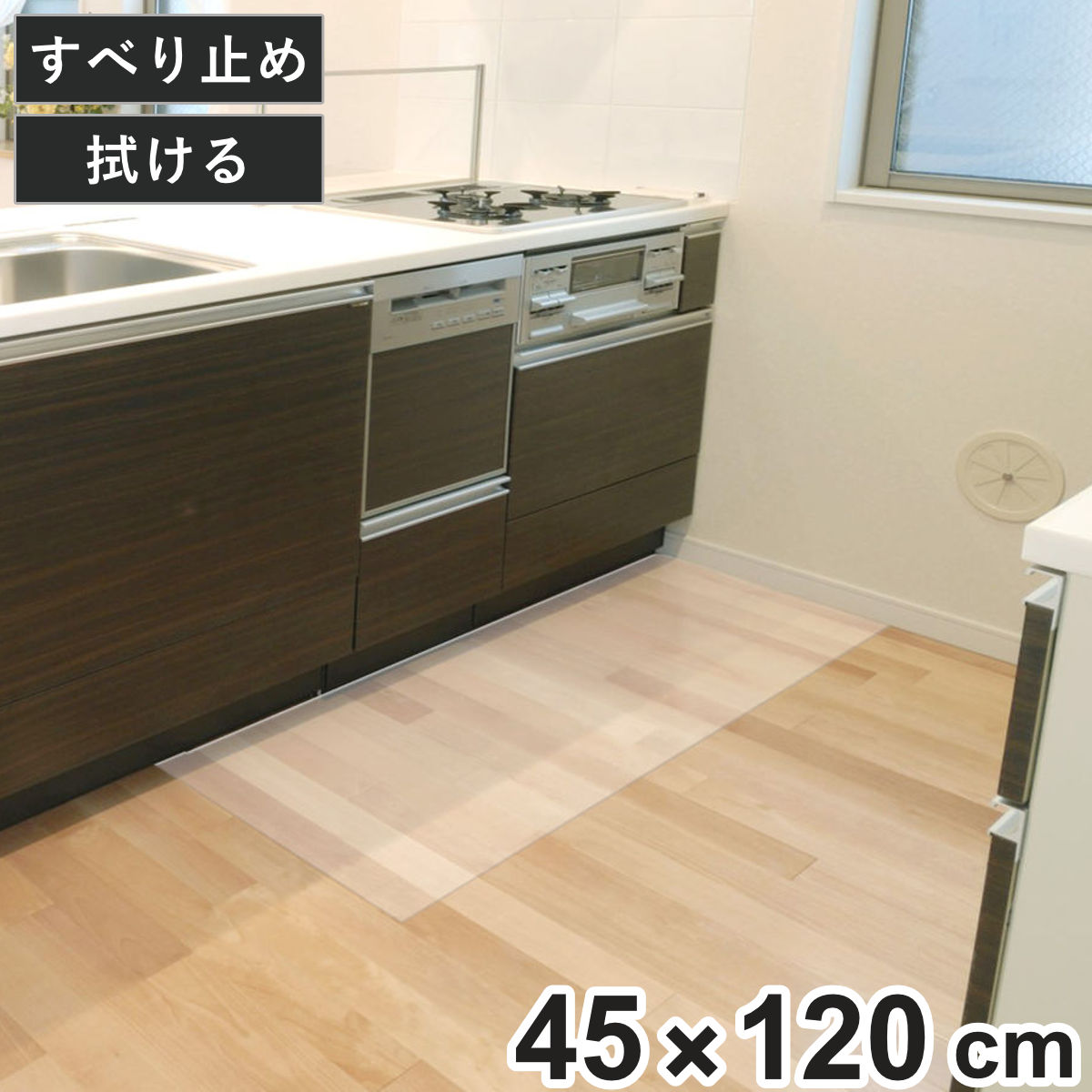 キッチンマット 透明キッチンマット 45cm×180cm シートタイプ ( 45cm 180cm 透明 キッチン マット キッチンシート 台所マット 拭けるキッチンマット クリアマット ズレない すべり止め 傷防止 汚れ防止 薄い 透ける 日本製 )