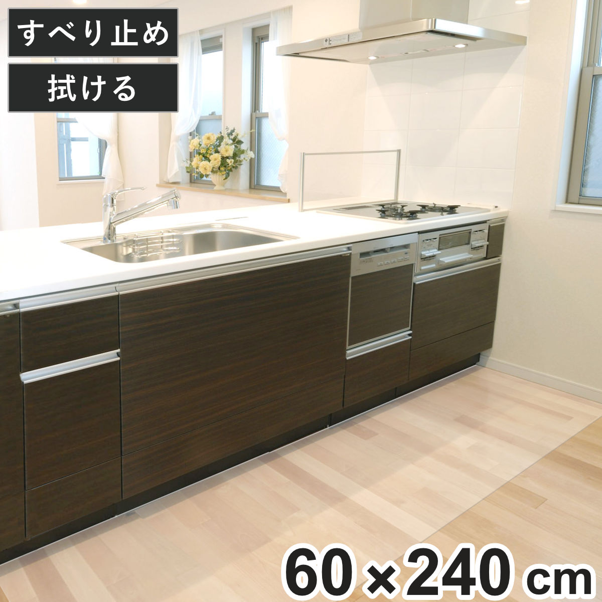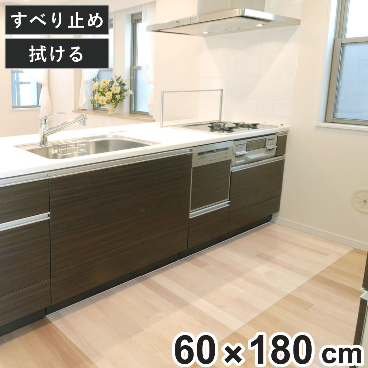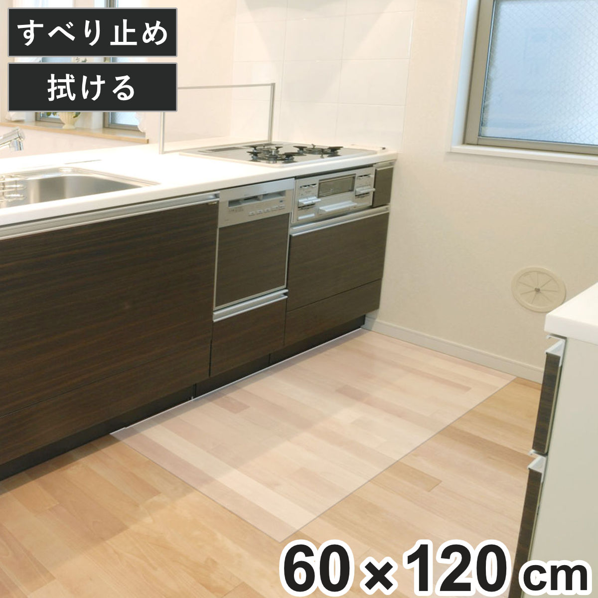 キッチンマット 透明キッチンマット 60cm×240cm シートタイプ ( 60cm 240cm 透明 キッチン マット キッチンシート 台所マット 拭けるキッチンマット クリアマット ズレない すべり止め 傷防止 汚れ防止 薄い 透ける 日本製 )
