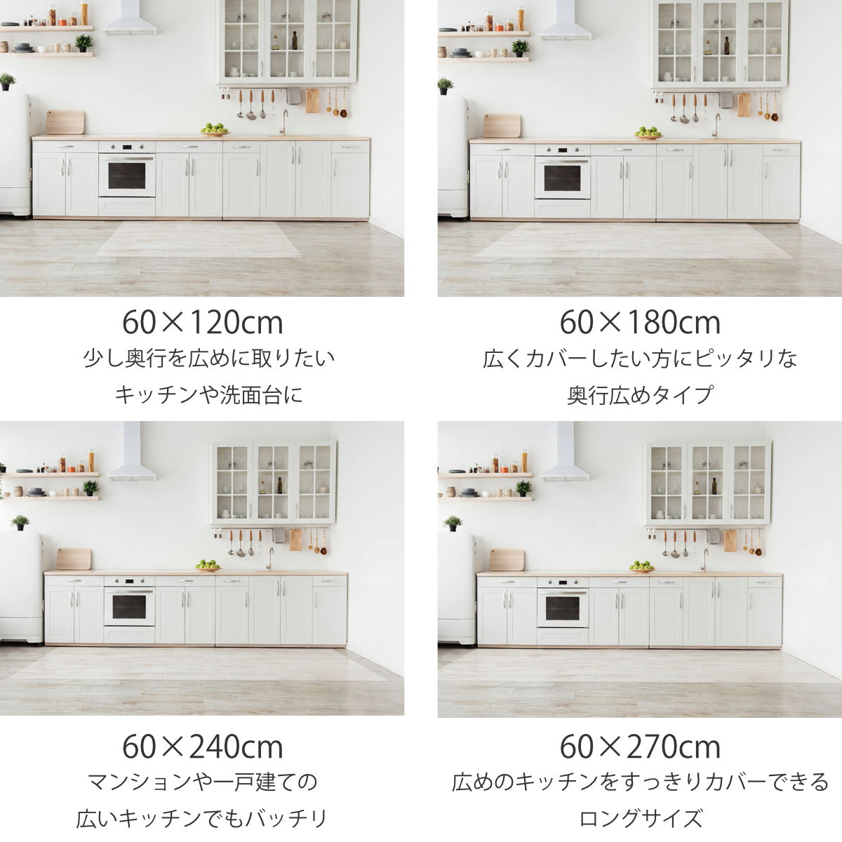●60×270cm・・・広めのキッチンをすっきりカバーできるロングサイズ。