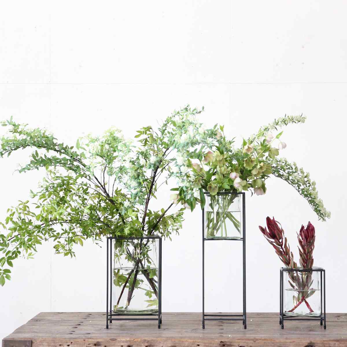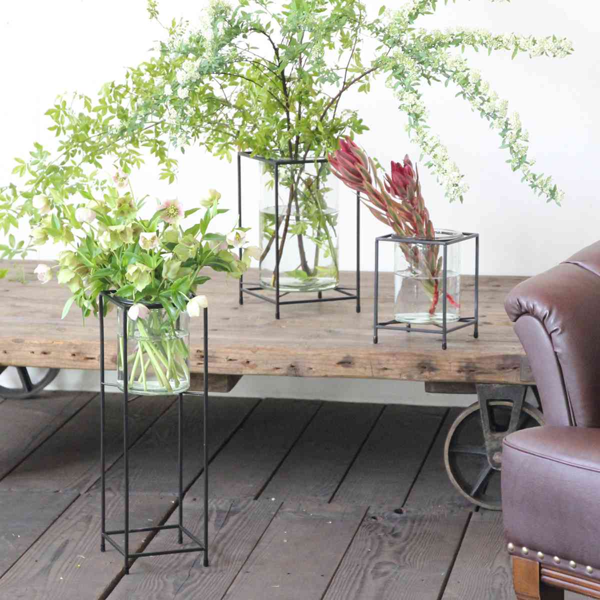 ●アイアンスタンドとガラスを組み合わせた存在感のあるフラワーベースです。