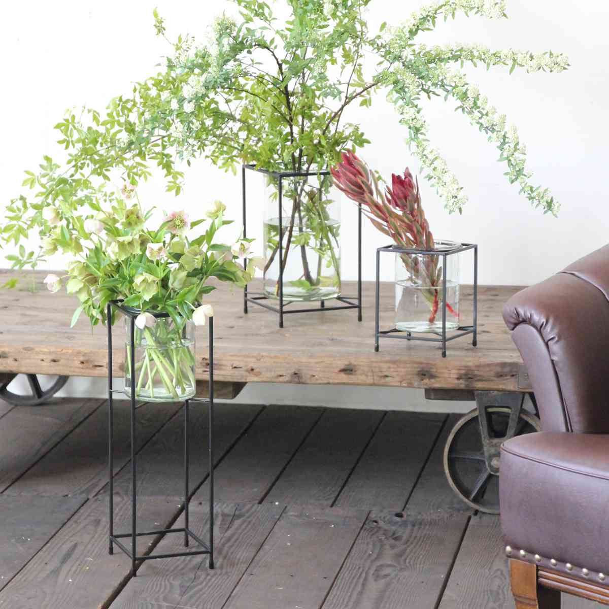 ●アイアンスタンドとガラスを組み合わせた存在感のあるフラワーベースです。