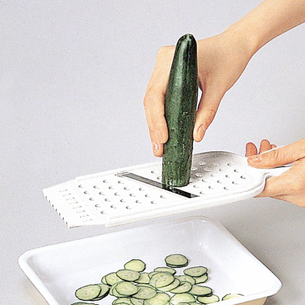 おろし・スライス・飾り切りの機能を兼ね備え、食材のカットから仕上げまで幅広く活躍します。調理器具をいくつも用意する必要がないため、洗い物も減り、後片付けもラクになります。