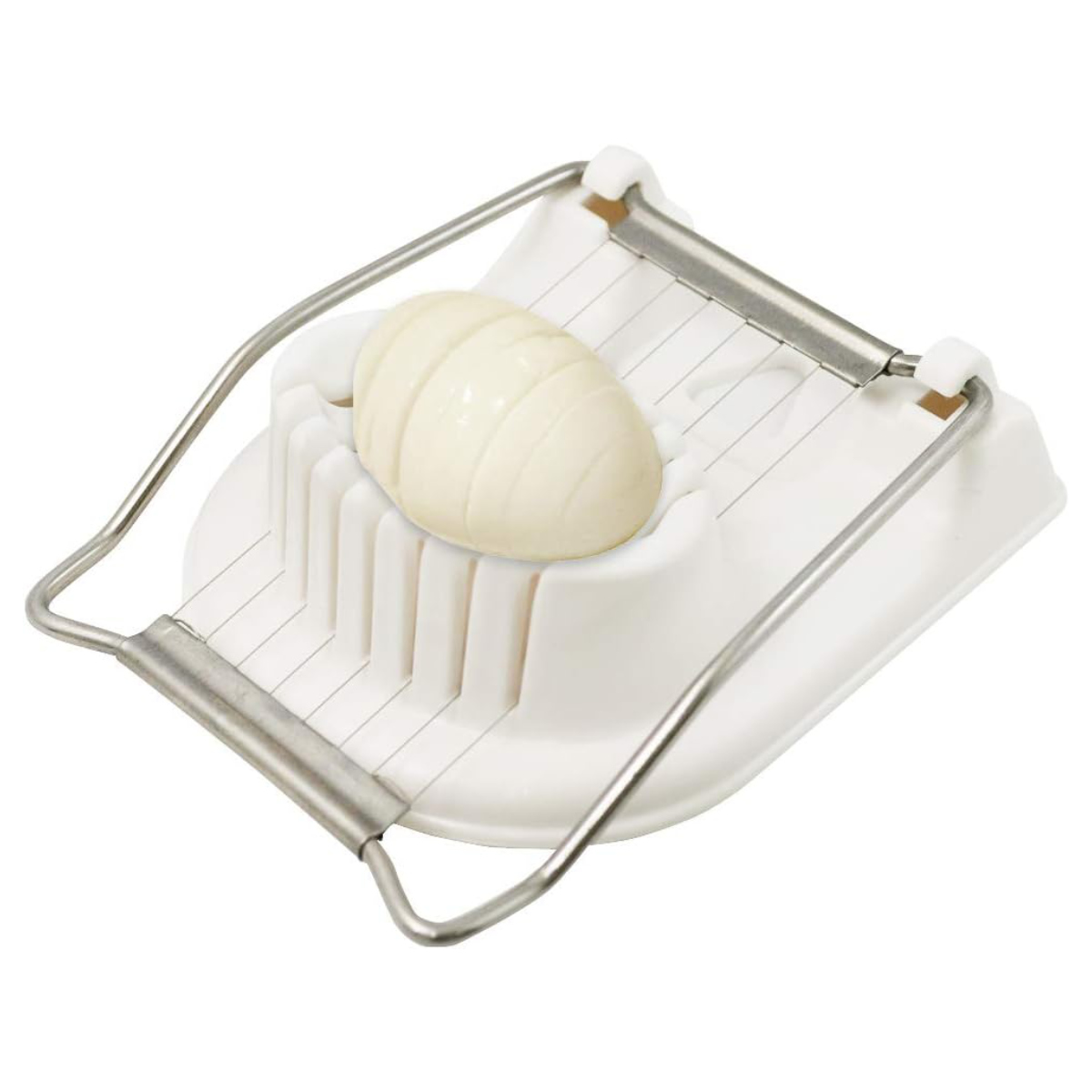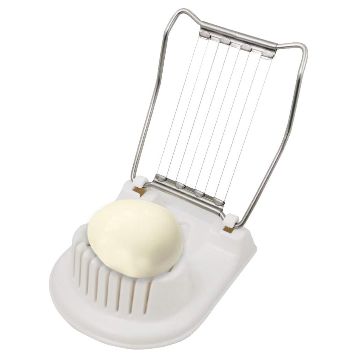 ゆで卵を形をくずさず、きれいな輪切りにカットできるエッグスライサーです。ワイヤー部分に卵をのせて押すだけで、均一な厚さにスライスできるため、サラダやサンドイッチの見た目も美しく仕上がります。