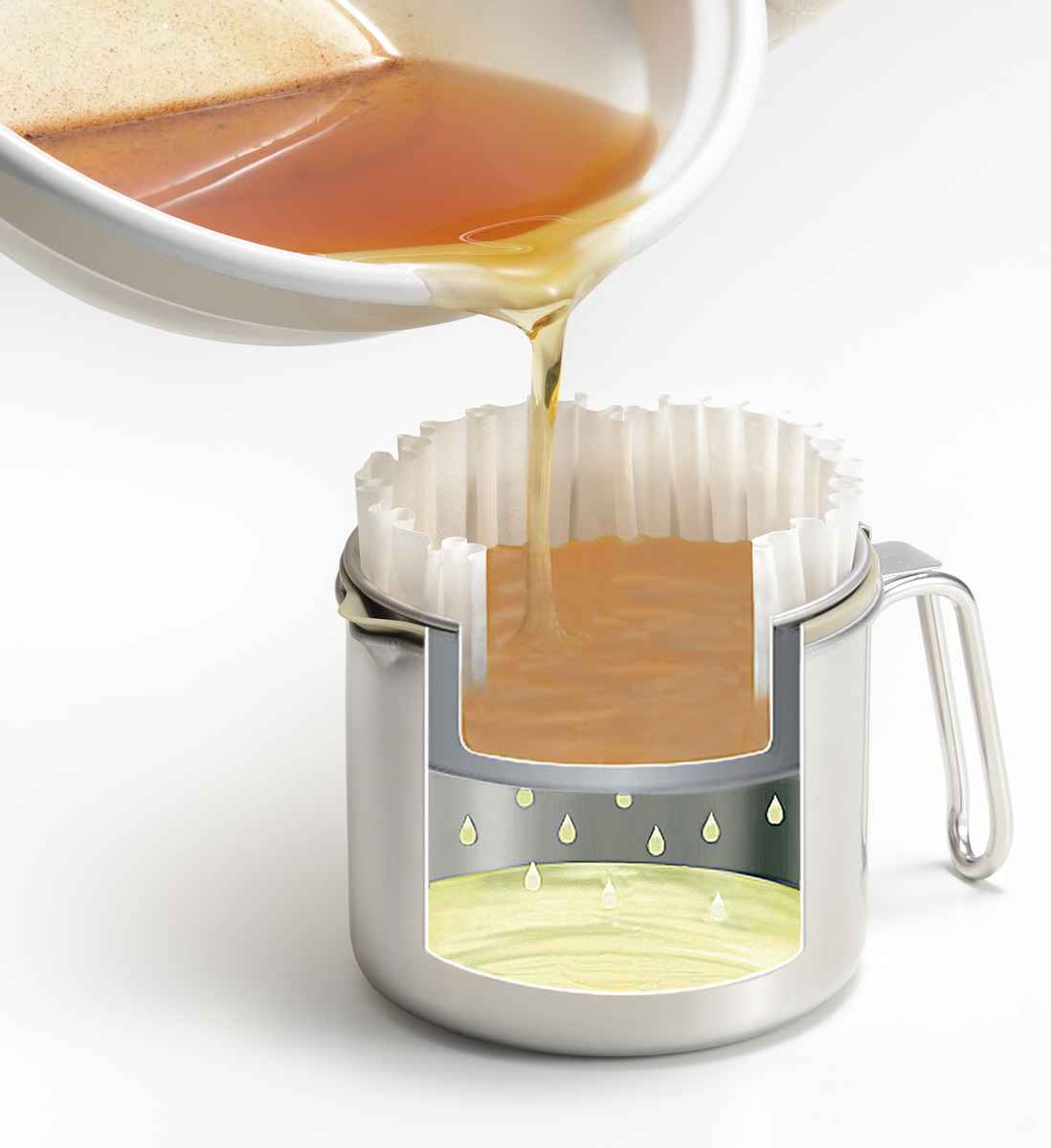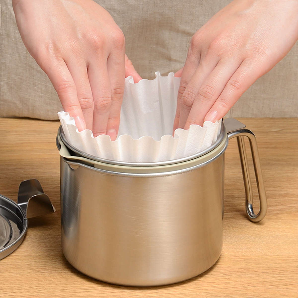 付属のろ過パウダーとフィルターの二重ろ過方式で不純物を除去し、いつもキレイな油で揚げ物ができます。油を使い回すことで油の購入回数が減り、家計の節約になります。