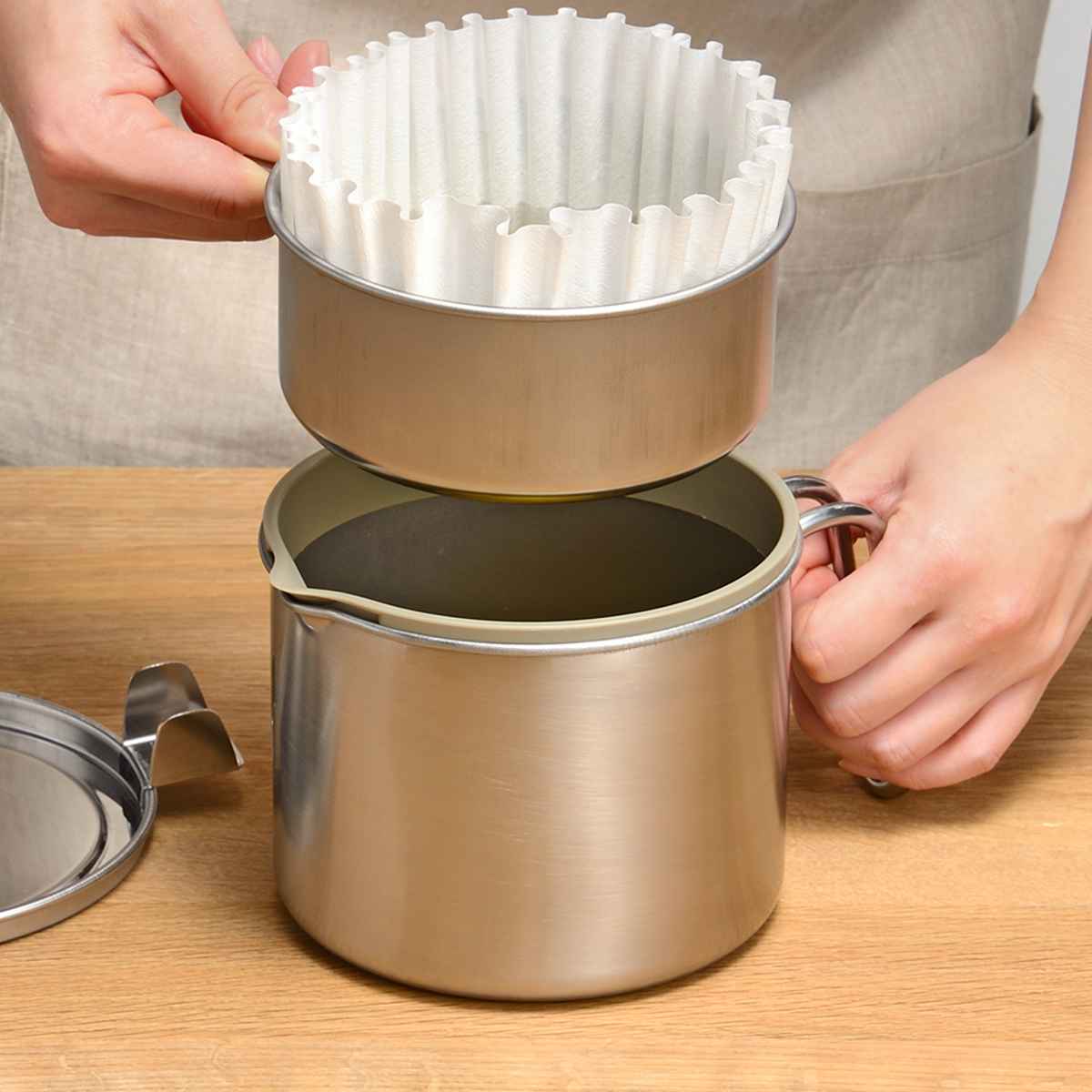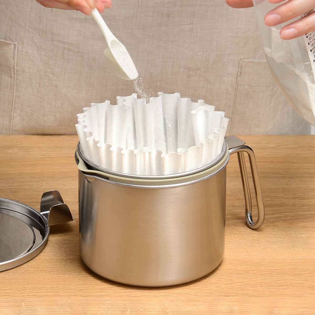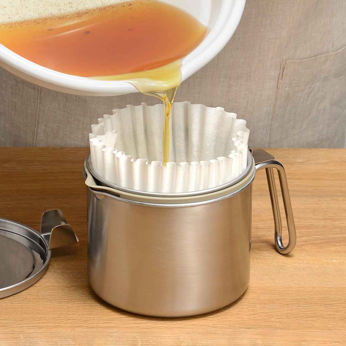 オイルポット leye レイエ ステンレス製 ろ過式オイルポット 日本製 ( 油こし器 500ml ろ過 ろ過ポット 油ポット フィルター ろ過容器 パウダー キッチン用品 キッチンツール オイル 油 保存 油濾過 計量スプーン付き )のレビュー