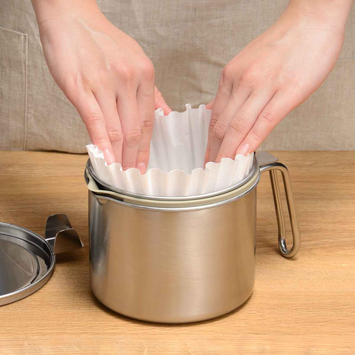 関連キーワード:調理用品 キッチン雑貨 キッチン小物 台所用品 便利グッズ おすすめ オススメ ハンドル付き げ物 天ぷら 再利用 保管 油こし 節約 エコ