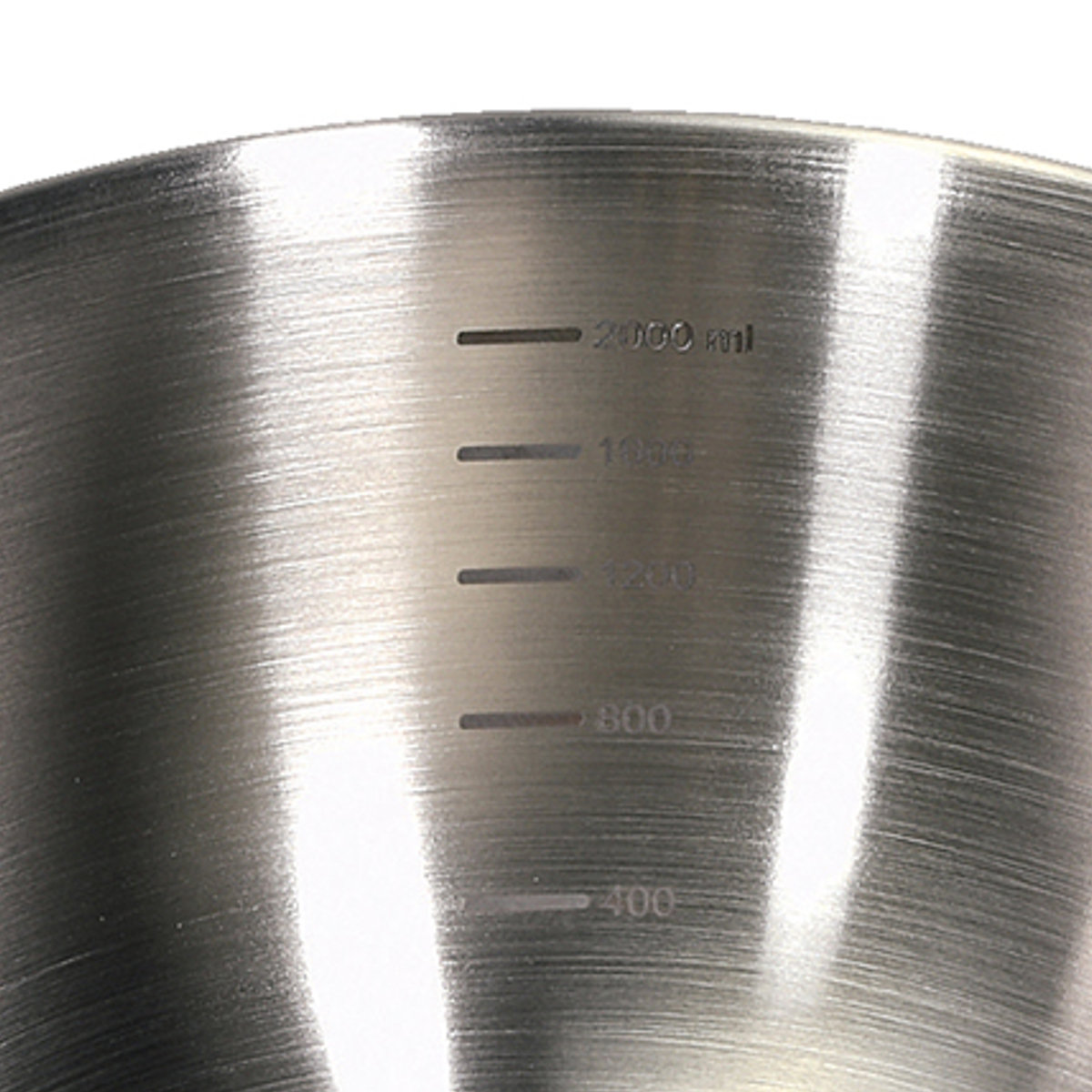 内側には目盛りが付いており、計量カップを使わずにそのまま分量の目安を確認できます。21cmサイズは2000mlまで400ml単位で量れます。