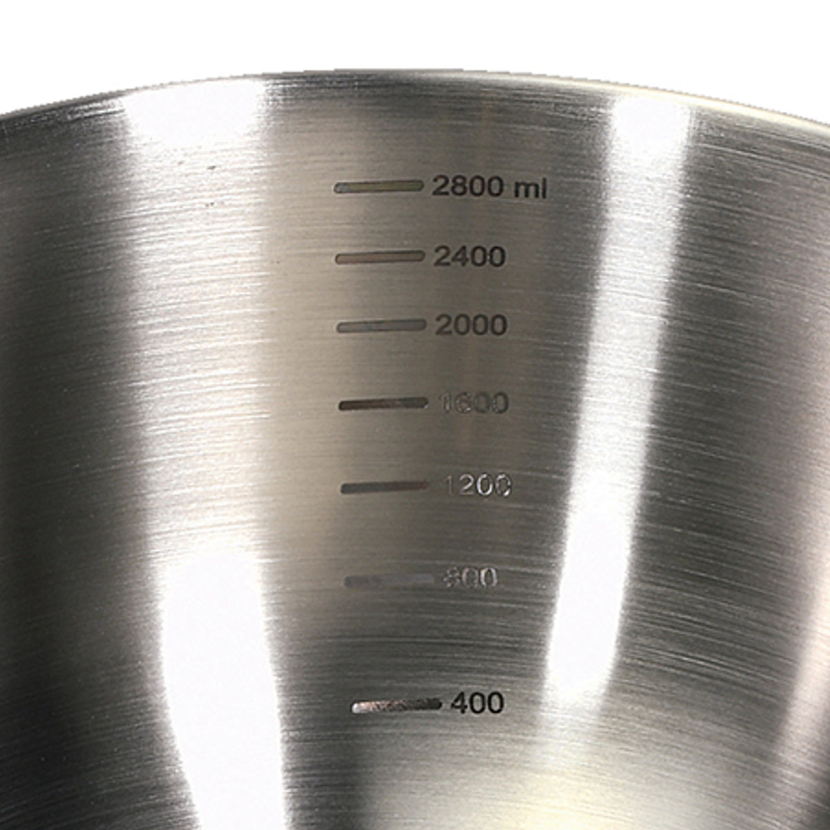 内側には目盛りが付いており、計量カップを使わずにそのまま分量の目安を確認できます。24cmサイズは2800mlまで400ml単位で量れます。
