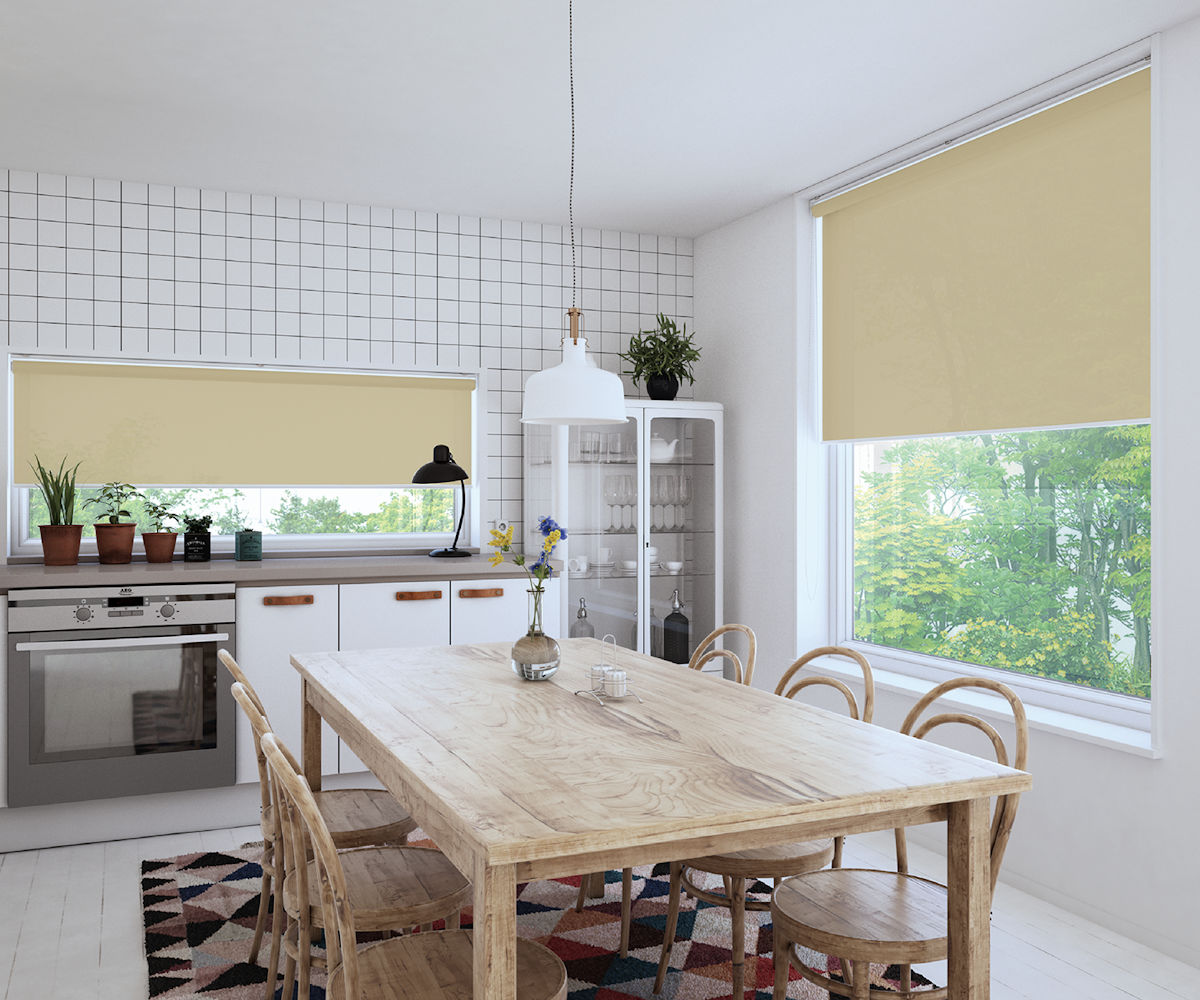 リビングの掃き出し窓や横長窓など、カーテン2枚分になりがちな窓も1台ですっきりカバーできる幅135cmのロールスクリーンです。無地ならではのやさしい表情で、インテリアの雰囲気を損なわず、お部屋全体を整った印象に仕上げます。