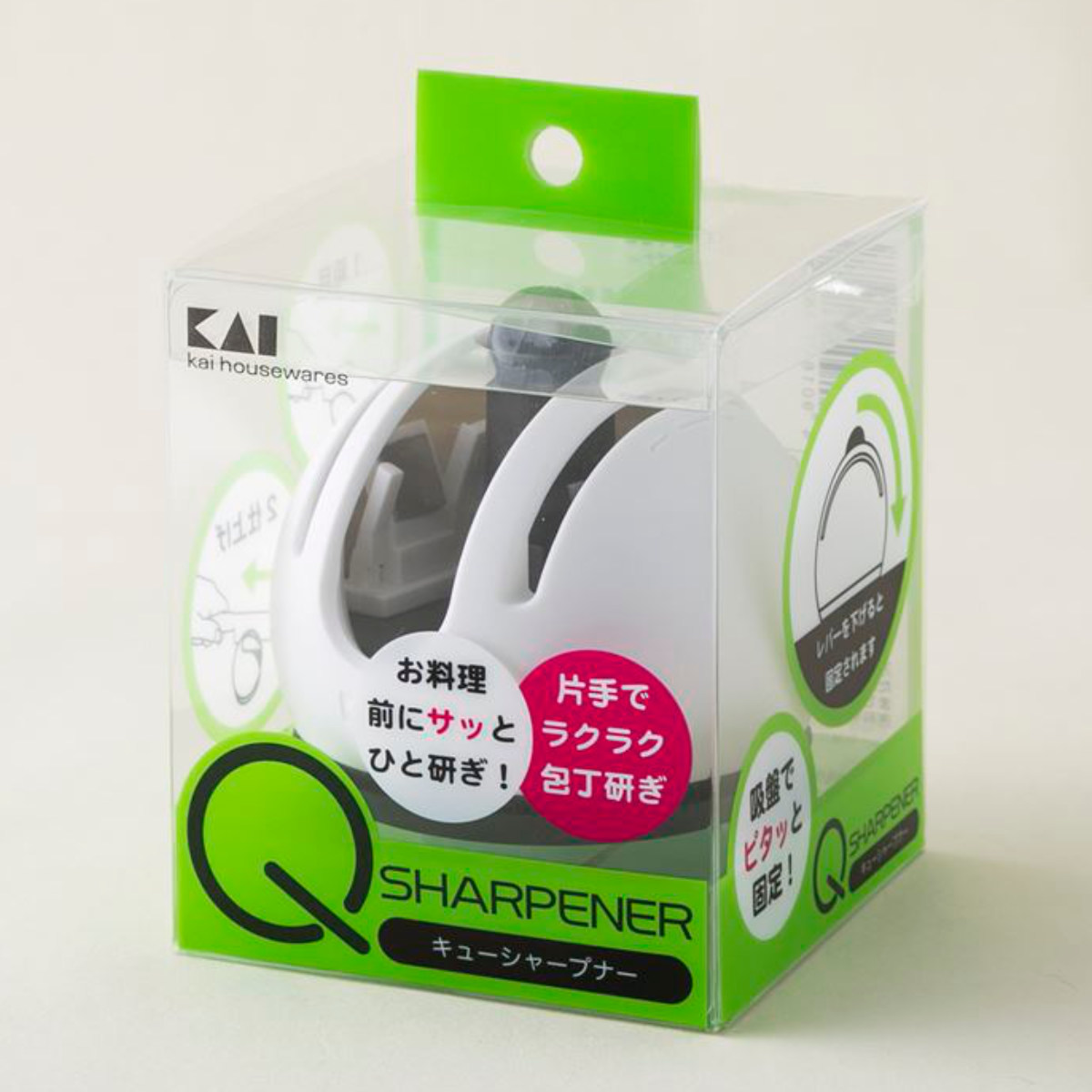 包丁研ぎ シャープナー 吸盤付き Qシャープナー 貝印 ( 包丁研ぎ器 包丁砥 研ぎ器 おすすめ 2段階 荒砥石 仕上げ砥石 研ぎ石 #1000 包丁砥石 包丁磨き 包丁用 ナイフ用 粗研ぎ 仕上げ 家庭用 )