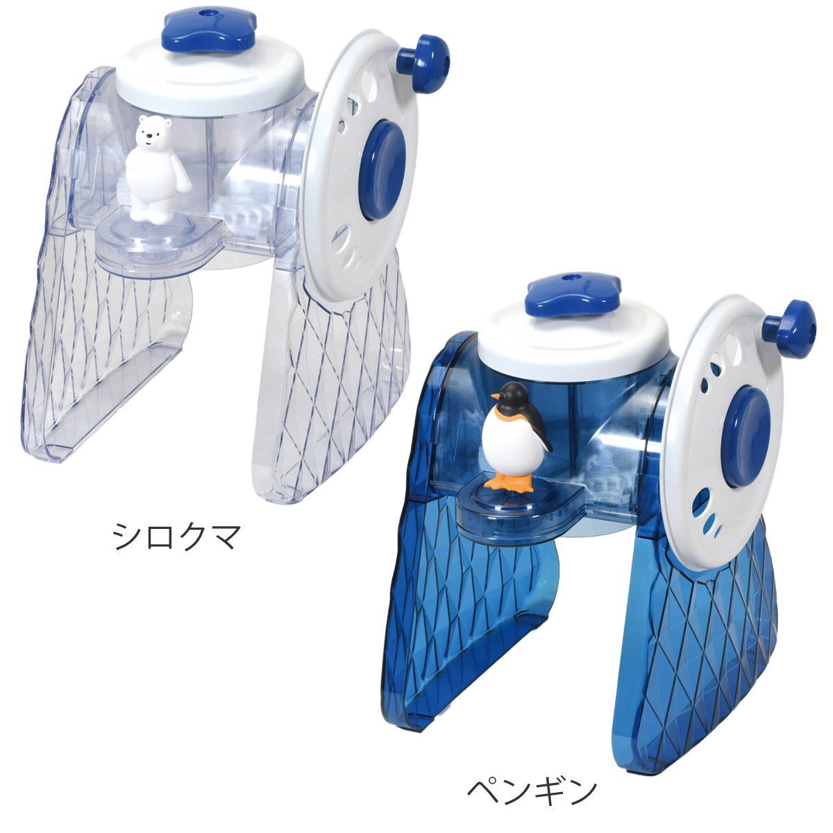 ハンドルを回すと、シロクマやペンギンがクルクル回る
