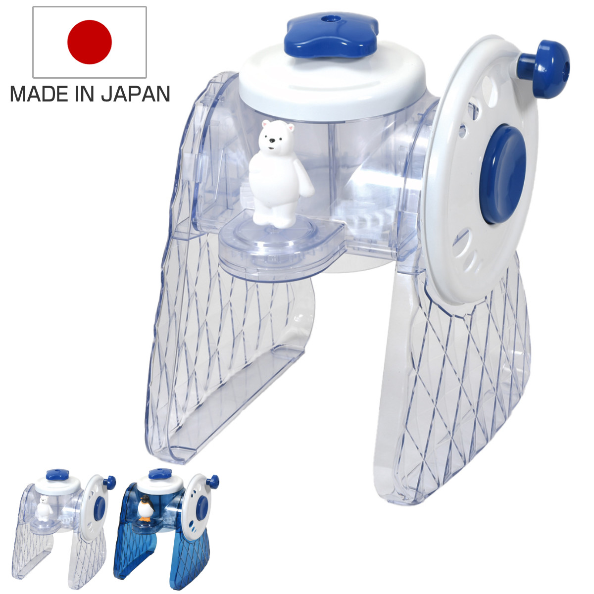 ●ハンドルを回すと、シロクマやペンギンがクルクル回る見た目にも楽しいかき氷器です。