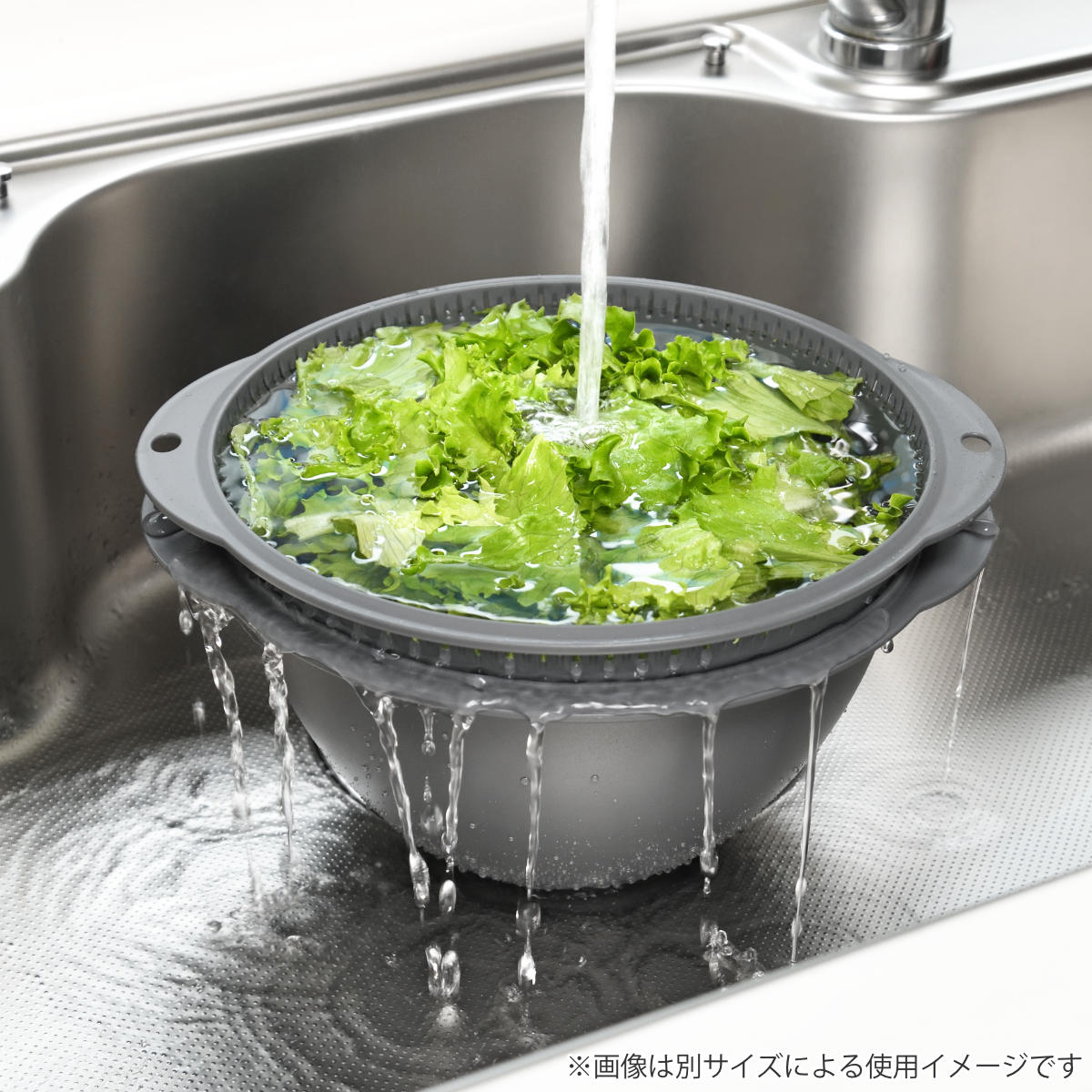 ●ザルとボウルを組み合わせれば、サラダスピナーのように水切りできます。