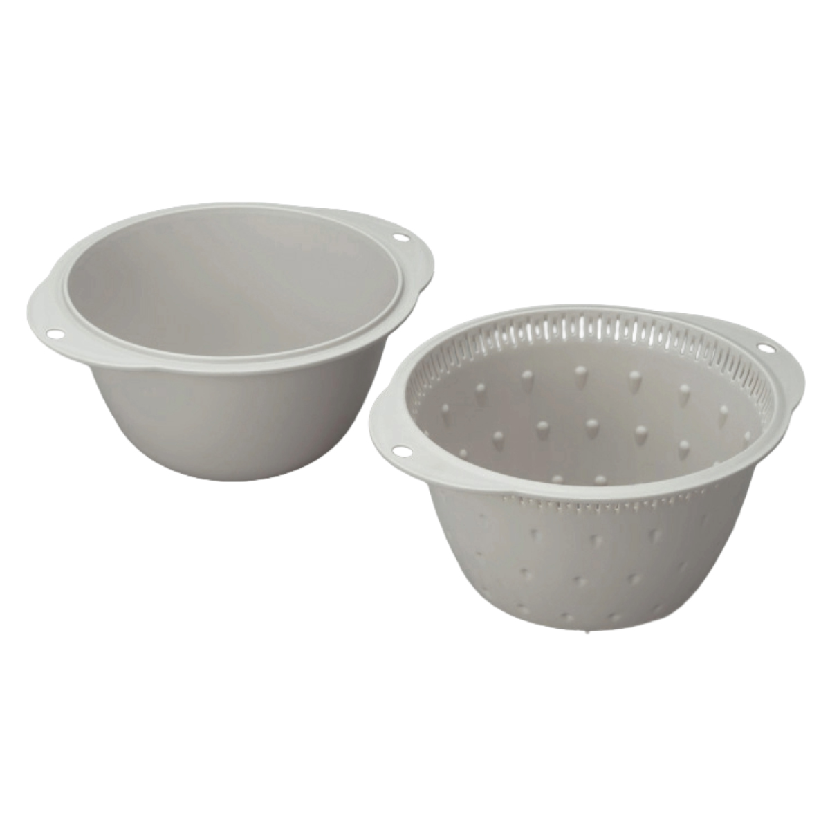 毎日の調理に便利なザルとボウルの2点セットです。切った野菜や茹でた麺の水切りも、ザルだけを持ち上げれば簡単です。