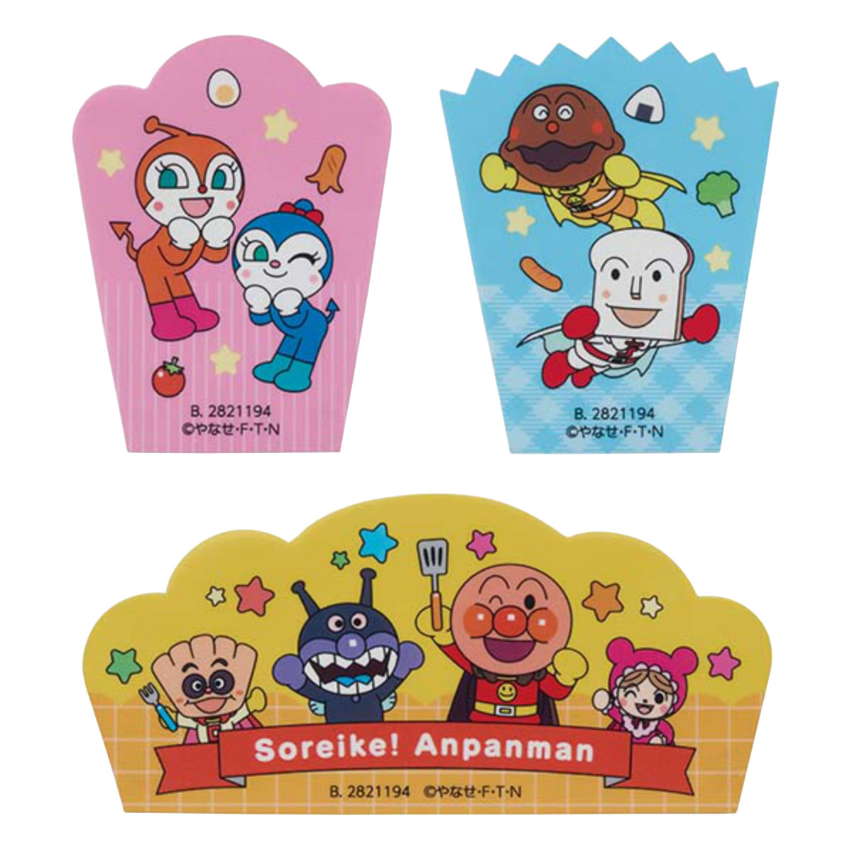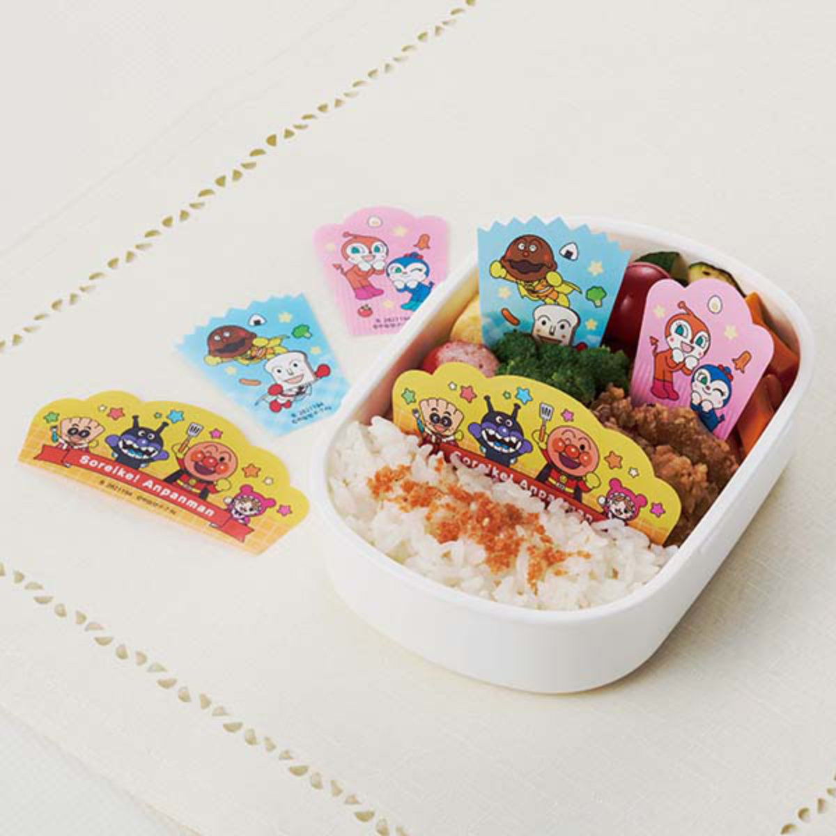 おかずの隙間からアンパンマンのキャラクター達が見えるバランセットです。いつものお弁当を簡単に可愛くデコレーション。3種類、それぞれ柄が異なるので、気分に合わせて使い分けできます。