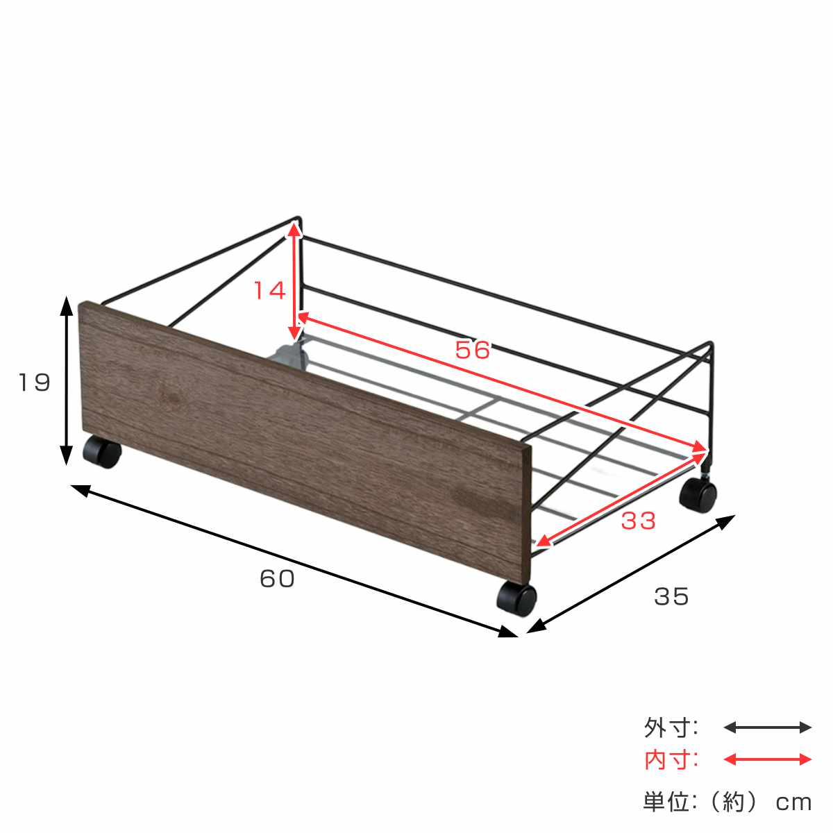 玄関収納 シューズボックス下 ワゴン 収納庫幅60cm 日本製 ( 収納ラック 靴 収納 シューズラック キャスター付き 木製 アイアン おしゃれ 隙間収納 ラック スチール インテリア 外遊び おもちゃ ガーデニング )