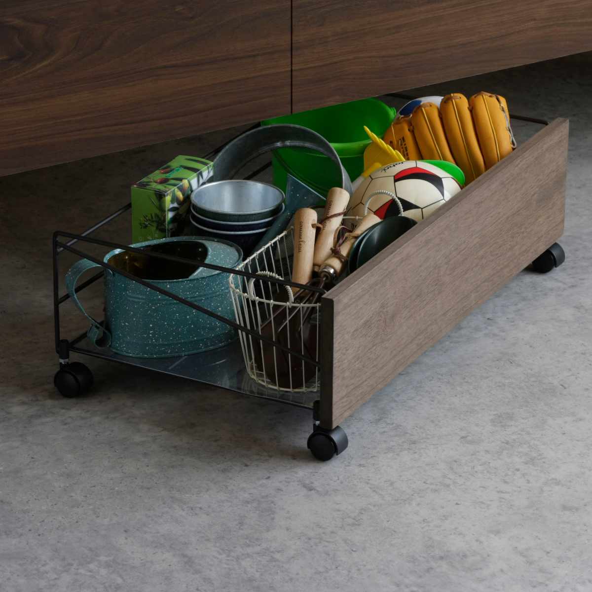 下駄箱やシューズボックス下の空いたスペースを有効活用できる収納ワゴンです。ホコリが溜まりがちなデッドスペースを便利な収納場所に変えられ、玄関まわりをすっきり整えたい方にぴったりのアイテムです。