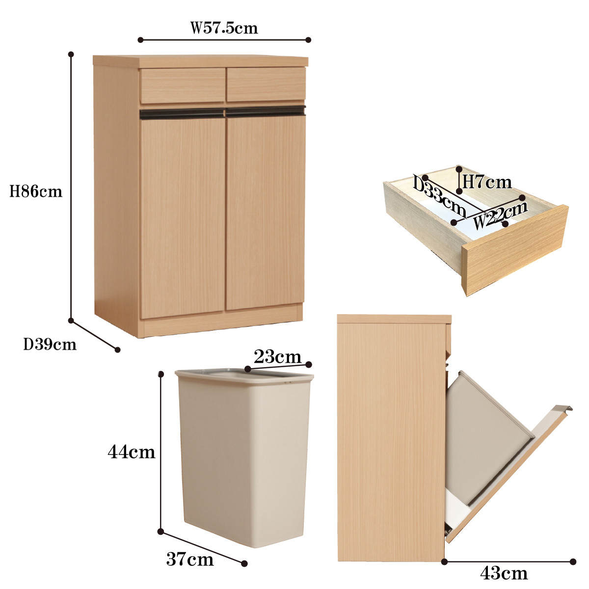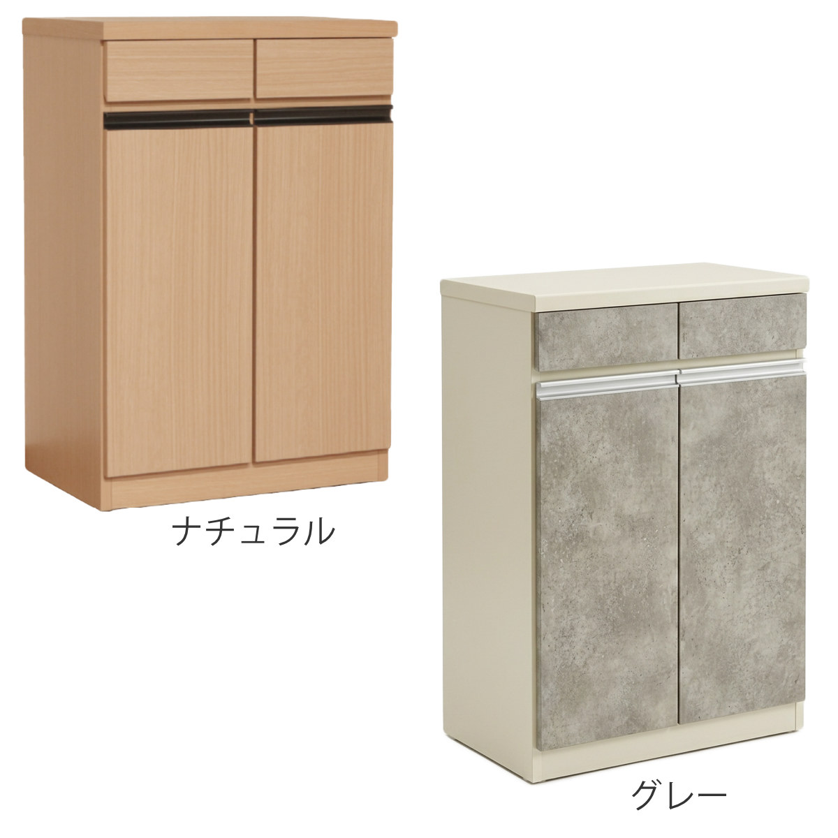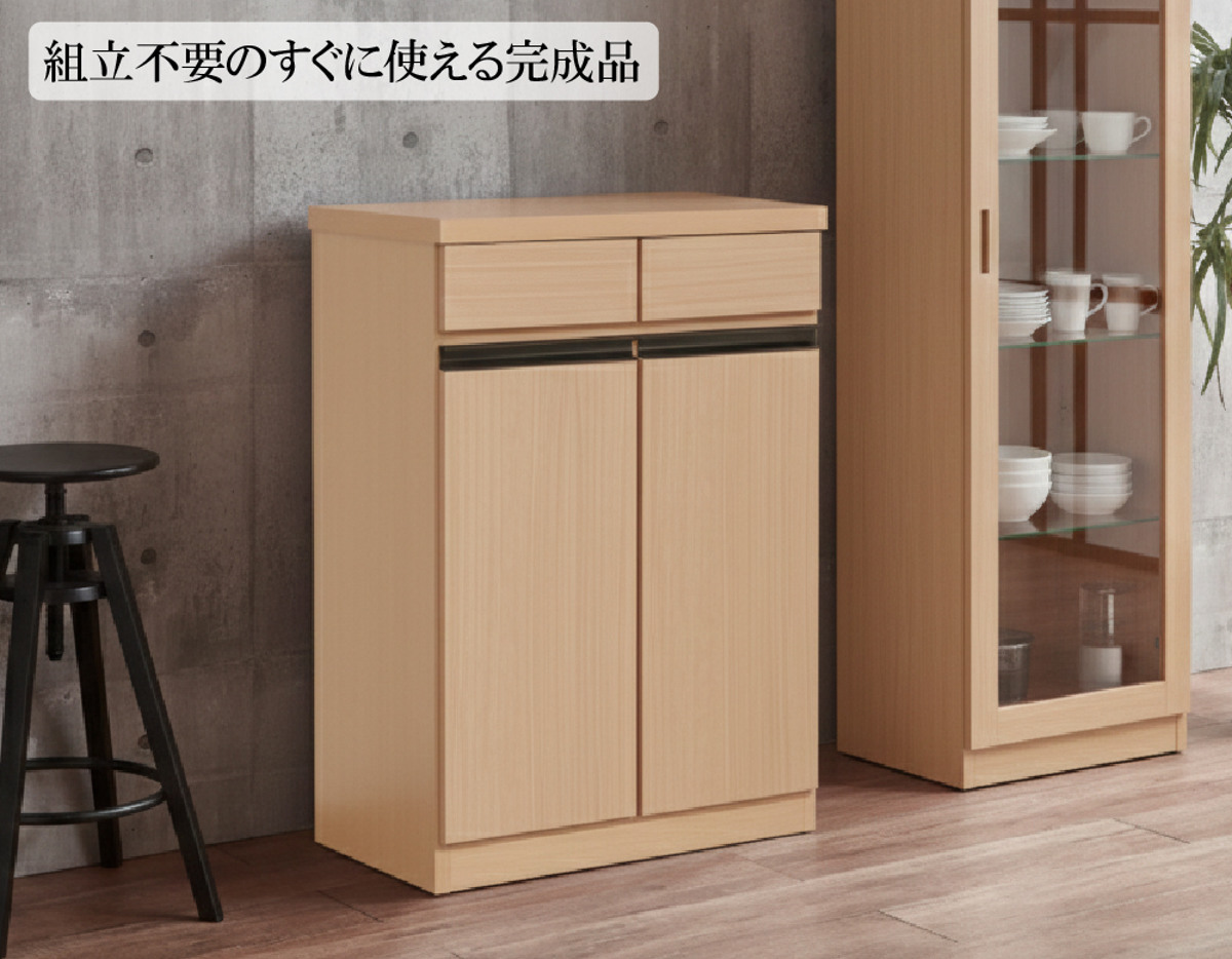 キッチンカウンター 幅57.5cm ゴミ箱付き 完成品 日本製 ( カウンター ラック 棚 ゴミ箱収納 分別 キッチン収納 引出し2杯 ナチュラル グレー ) 【ナチュラル】