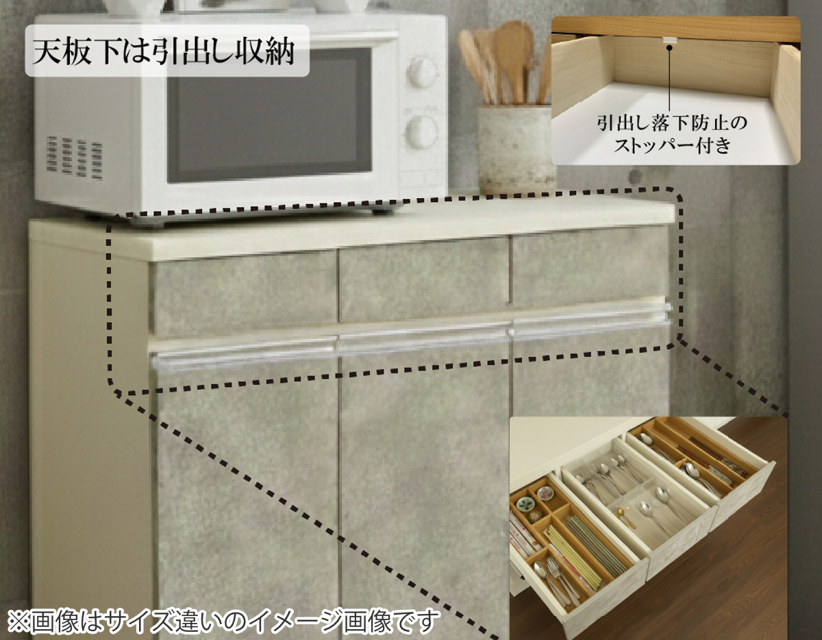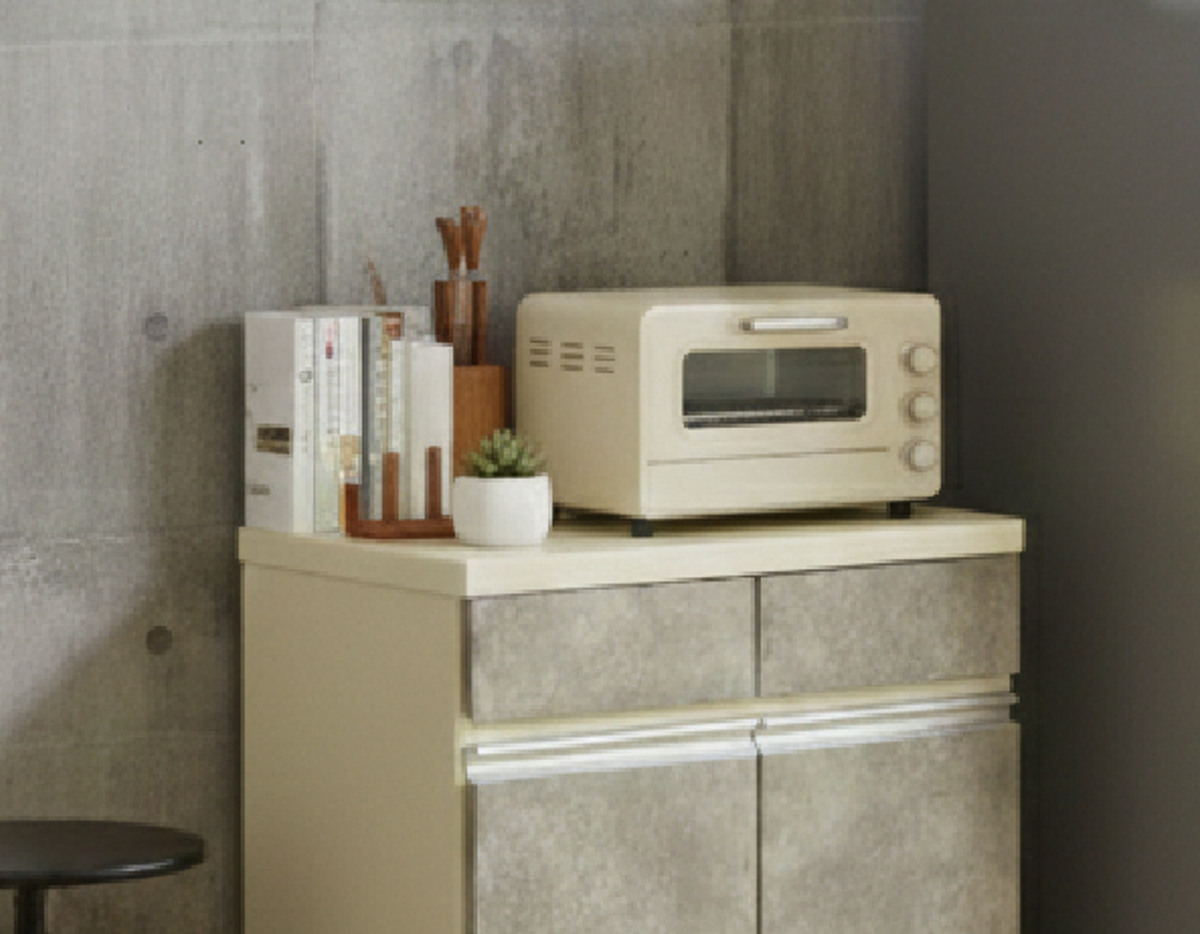 天板は、トースターや電子レンジなどのキッチン家電を置くのに最適です。調理や配膳の作業スペースとしても使え、毎日の家事をスムーズにサポートします。