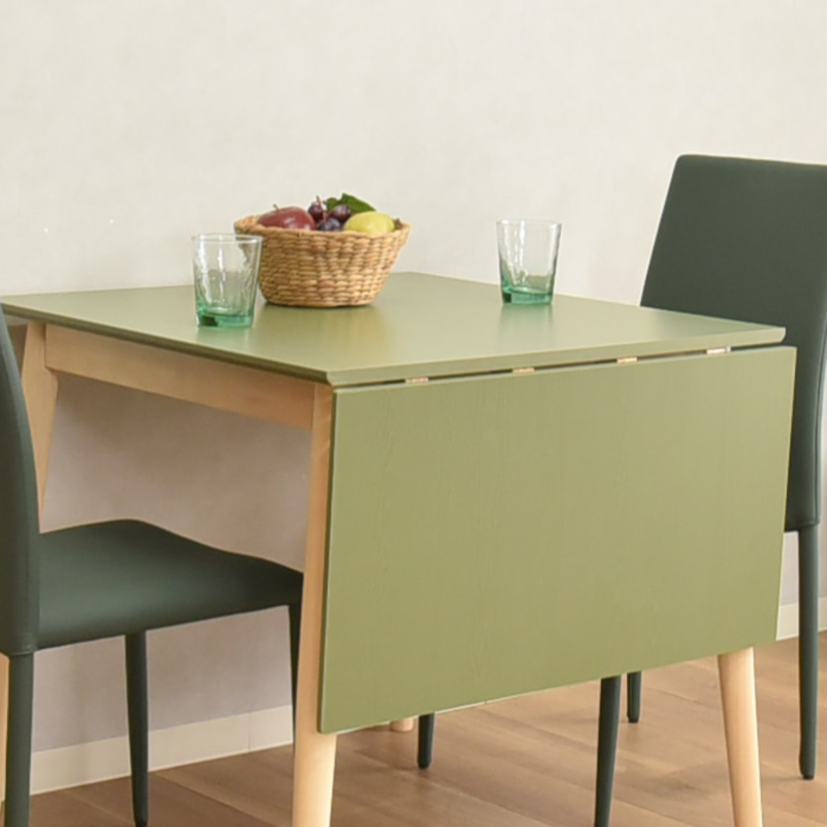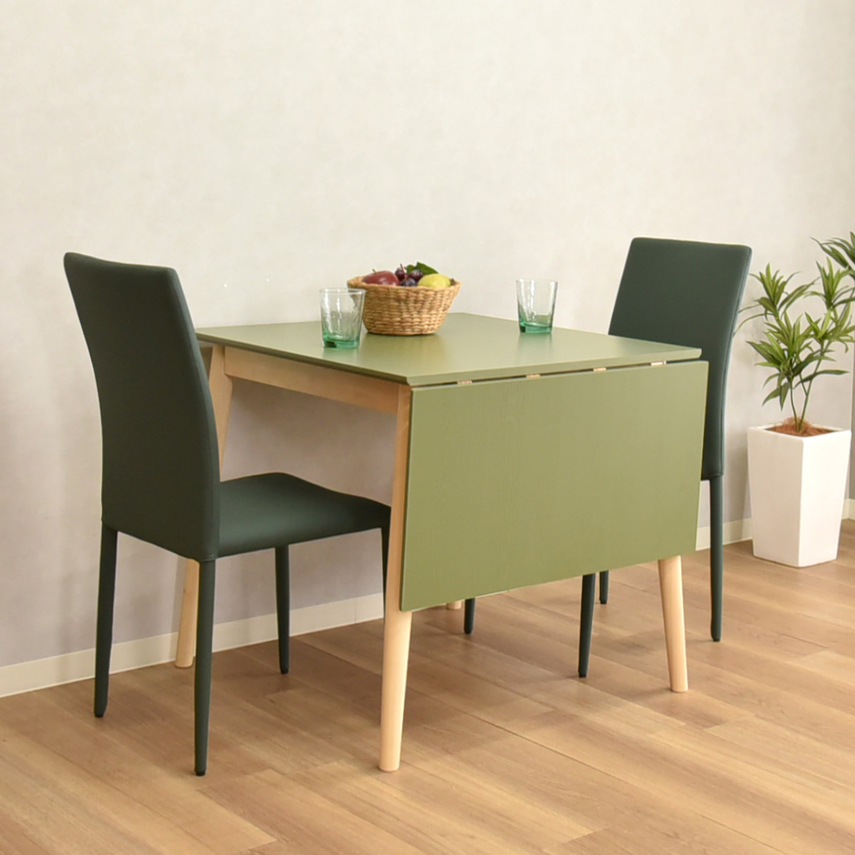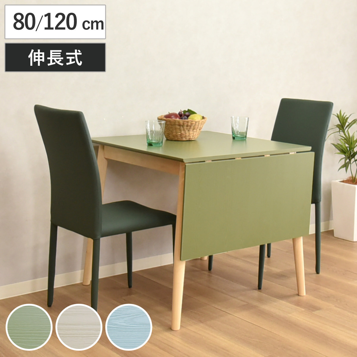 ダイニングテーブル 幅80~120cm 伸長式 ジョイフル ( テーブル 食卓テーブル 1人用 2人用 机 木製 長方形 伸縮テーブル 折りたたみ 天板 伸長 簡単 バタフライ ダイニング 食卓 作業 省スペース コンパクト 来客時 ) 【グリーン】