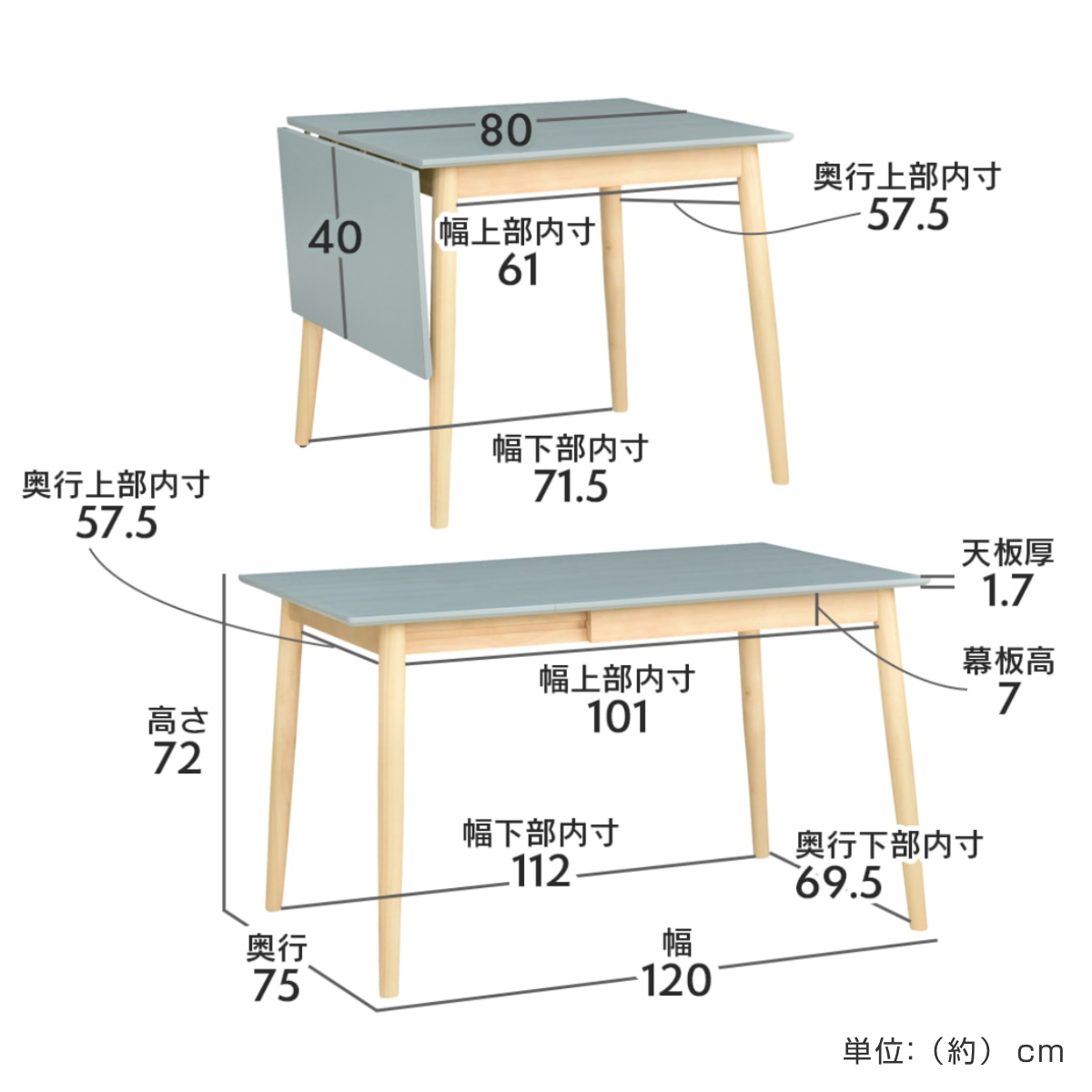 | サイズ | 約 幅80/120×奥行75×高さ72(cm) |