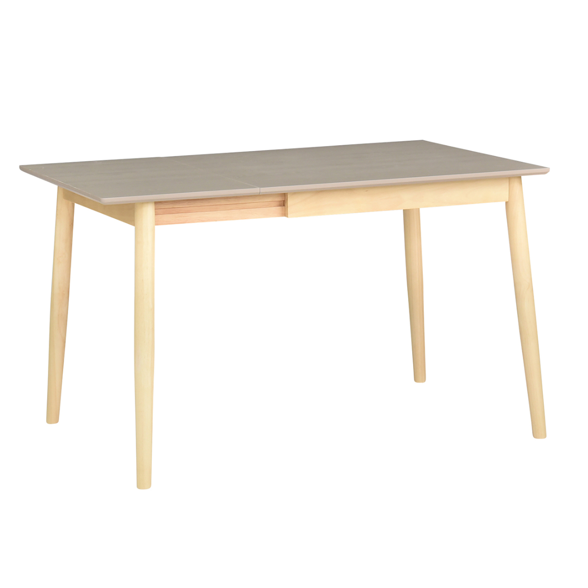 素材感のある木目とやさしい色合いが魅力の伸長式ダイニングテーブルです。脚部はナチュラルな色味でまとめられ、お部屋全体を明るい印象に仕上げます。