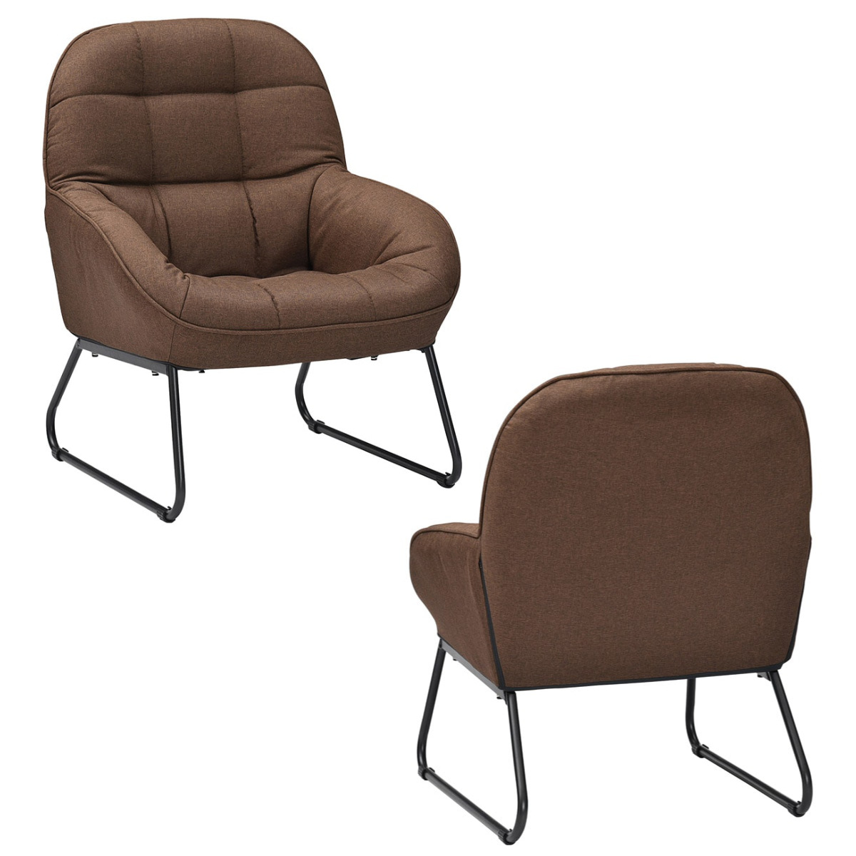 ソファ 1人掛け 幅65cm マルモ パーソナルチェア ( ソファー 一人掛け コンパクト リビングソファ ローソファ フロアソファ もこもこ ボリューム キルティング ウレタン ファブリック パーソナルソファ スチール脚 ワンルーム ) 【ブラウン】