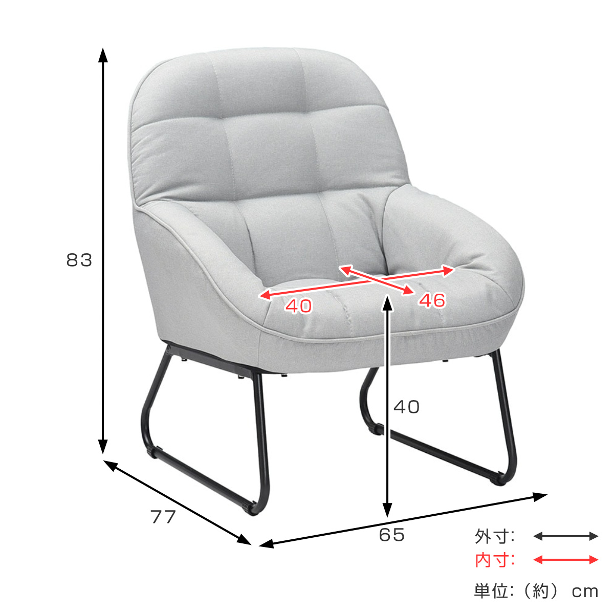 | サイズ | 約 幅65×奥行77×高さ83(cm) 座面高:約 40(cm) |