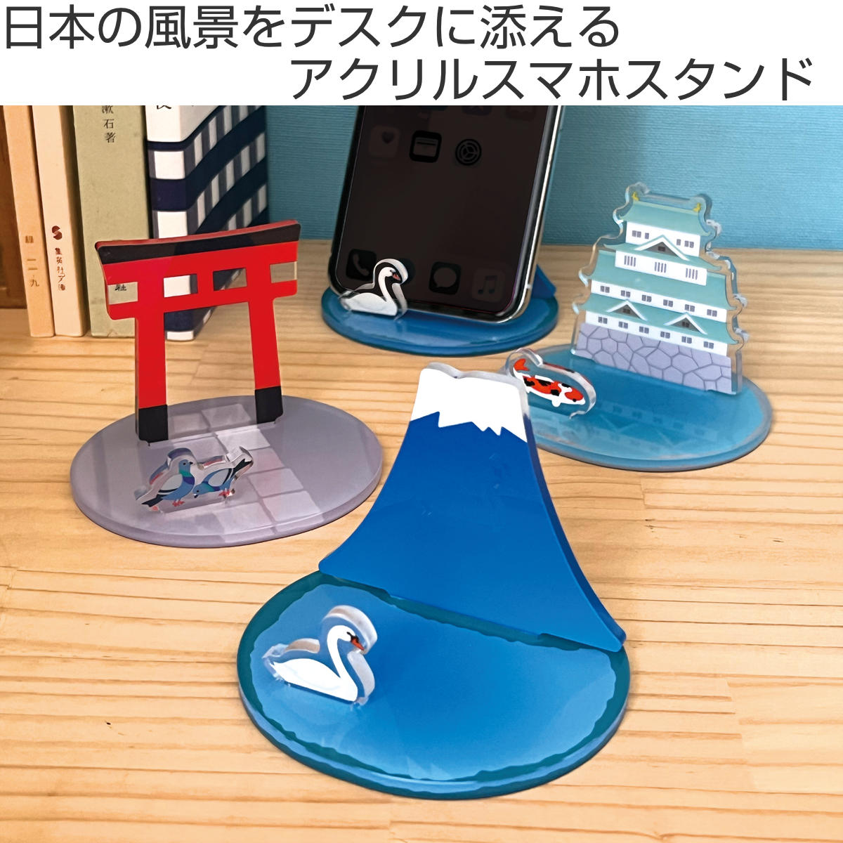スマホスタンド 日本の風景 アクリルスマホスタンド ( スマホ 置き 富士山 鳥居 お城 スタンド 便利 縦置き 横置き 対応 動画 アクリル製 卓上 スマートフォン ホルダー スマホ置き 雑貨 携帯スタンド 飾る ) 【お城】