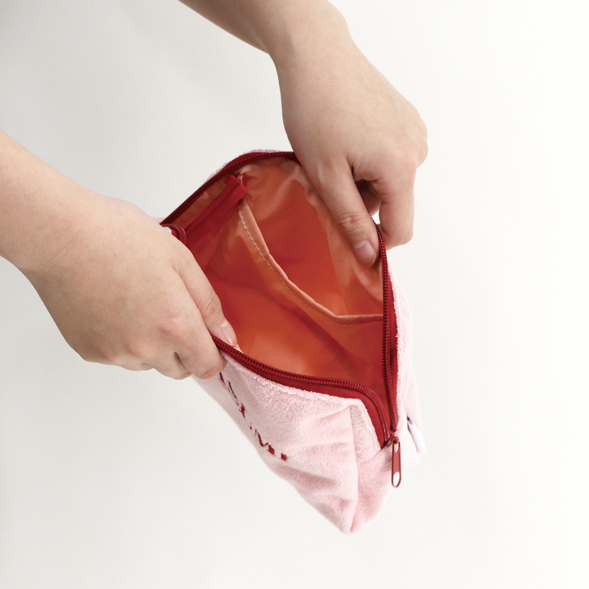 ポーチ 小物入れ 大きめ パイルポーチ OYASUMI ( コスメポーチ 内ポケット付き 洗える ファスナー かわいい 小物収納 小物 ガジェット 充電器 コード 化粧品 薬 コスメ リップ 持ち運び おしゃれ ) 【ピンク】
