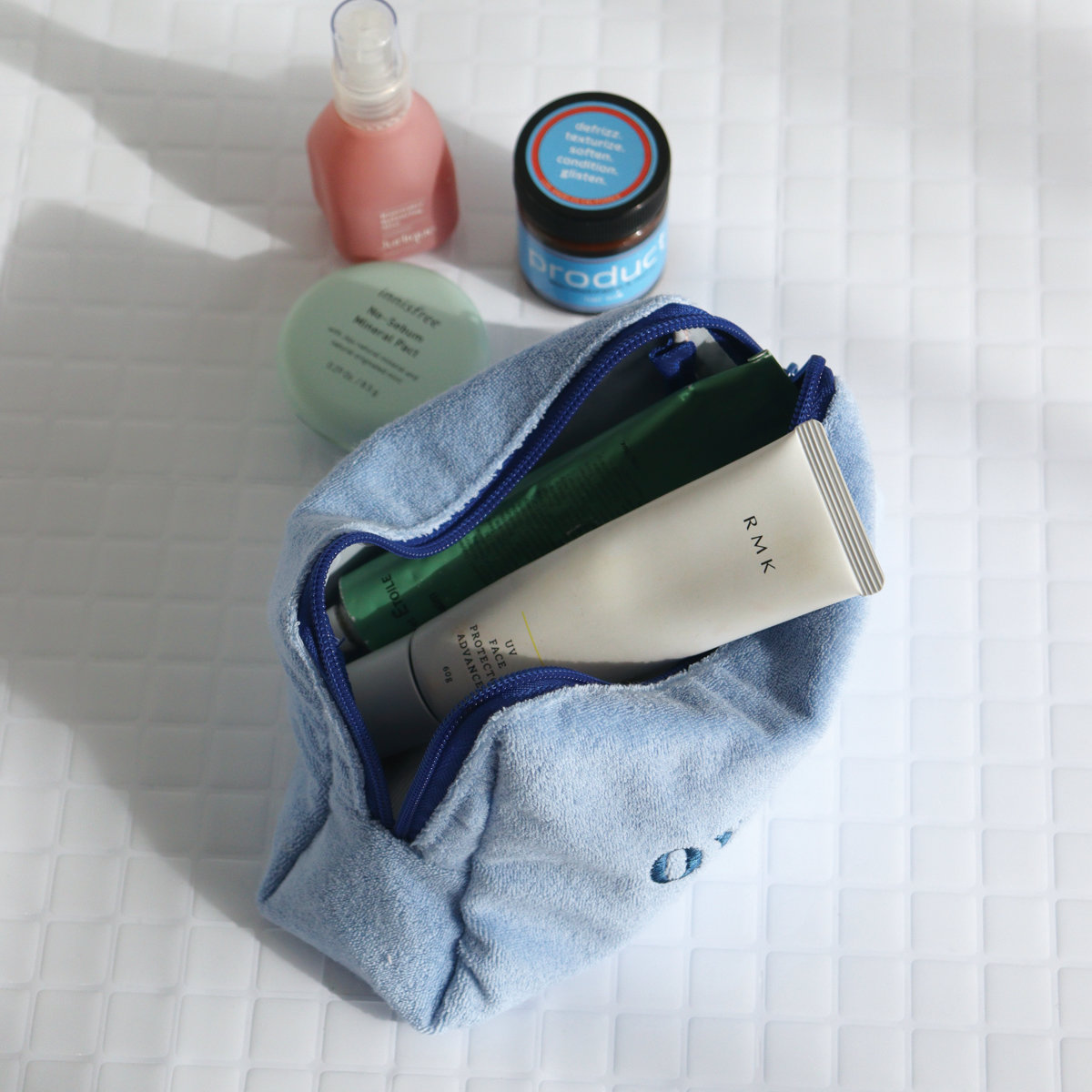 触り心地の良いパイル生地の大きめポーチ「OYASUMI」